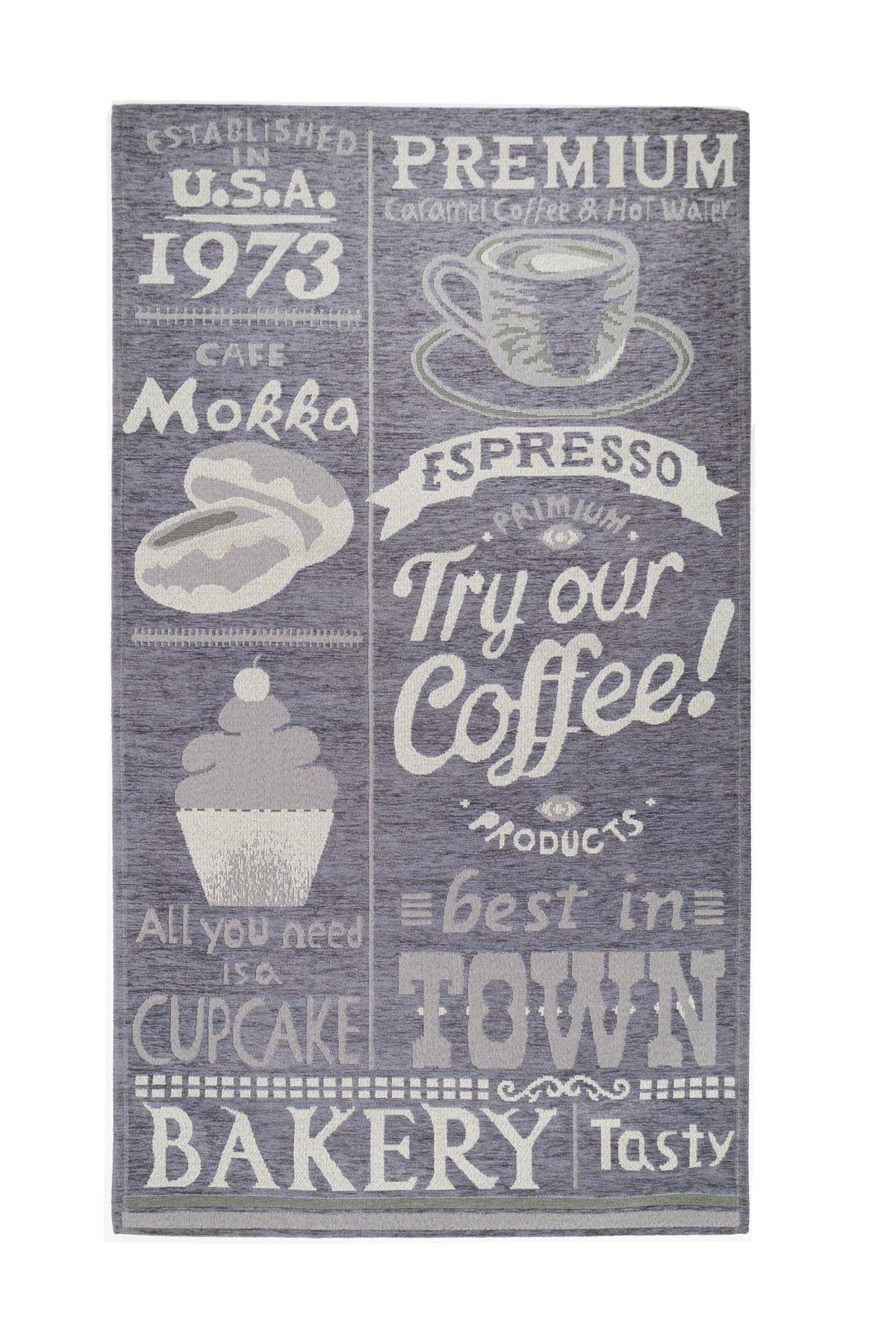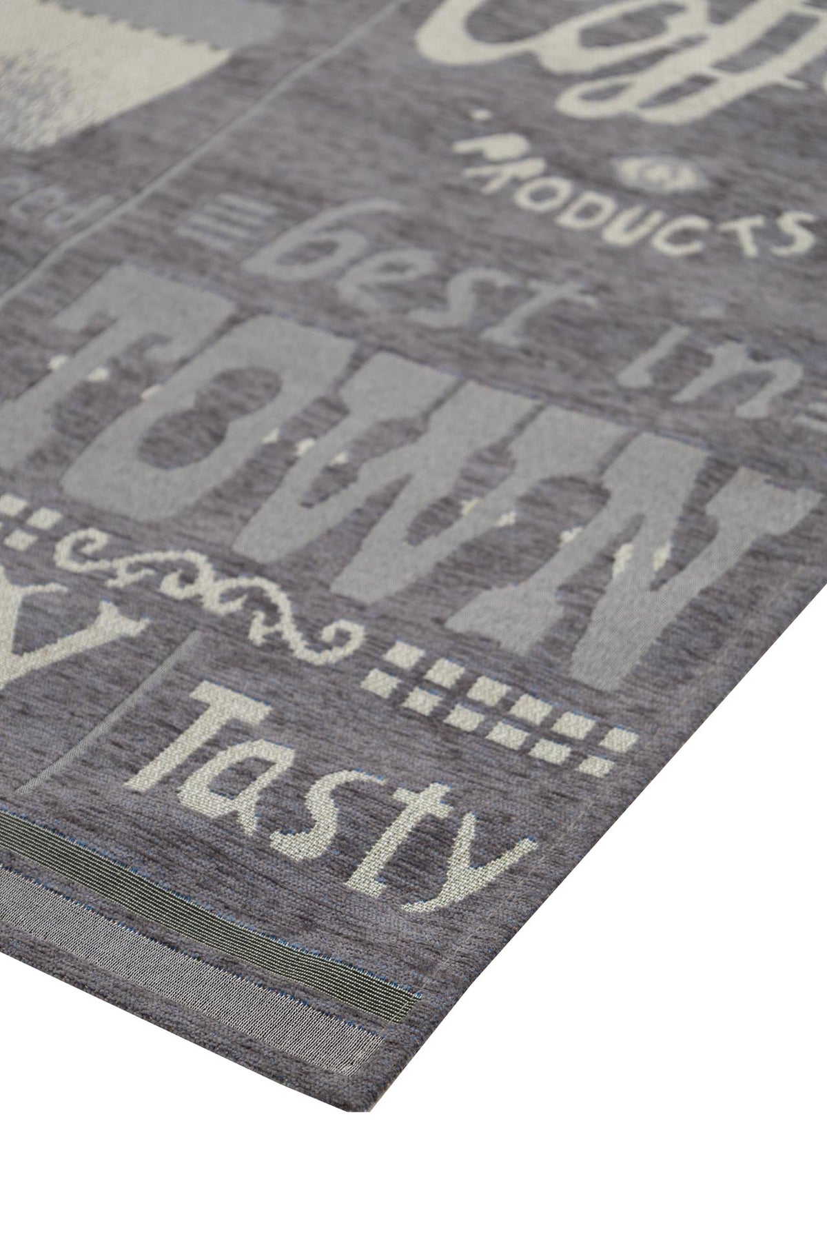 Αντιολισθητικό Χαλί Coffee Canvas της εταιρίας Royal Carpet σε διάσταση 0.75X1.50cm. Κατασκευασμένο από 100% ακρυλικά νήματα, με υποαλλεργικές και αντιστατικές ιδιότητες, προσφέρει πρακτικότητα και στυλ στον χώρο σας. Το σχέδιο με καφέδες, cupcakes και vintage επιγραφές σε γκρι φόντο, δημιουργεί μια ατμόσφαιρα που θυμίζει πρωινό, ιδανική επιλογή για την κουζίνα ή κάποιον χώρο εστίασης. Ελαφρύ και εύκολο στο καθάρισμα, ταιριάζει σε μοντέρνους αλλά και κλασικούς χώρους.