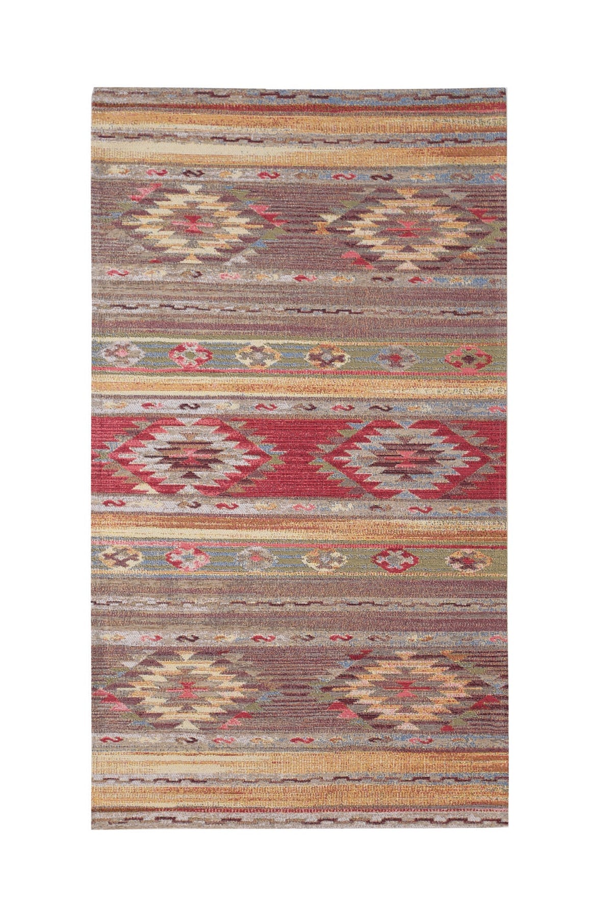 Αντιολισθητικό Χαλί Μπεζ Canvas της εταιρίας Royal Carpet σε διάσταση 0.60X0.90cm. Ελαφρύ χαλί κατασκευασμένο από 100% ακρυλικά νήματα που το καθιστούν ανθεκτικό και με αντιολισθητικό υπόστρωμα που προσφέρει σταθερότητα σε κάθε επιφάνεια. Το σχέδιό του είναι εμπνευσμένο από παραδοσιακά γεωμετρικά μοτίβα σε γήινες αποχρώσεις μπεζ, καφέ, κόκκινου και πράσινου, δημιουργώντας μια ζεστή και αυθεντική αισθητική στον χώρο. Υποαλλεργικό, αντιστατικό και εύκολο στο καθάρισμα, αποτελεί ιδανική επιλογή για κουζίνα ή μπάνιο. Ένα χαλί που θυμίζει παραδοσιακή αισθητική.