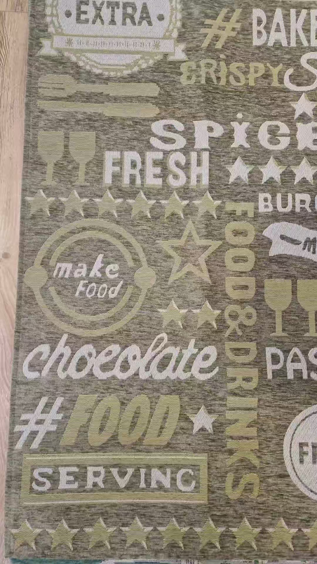 Μοντέρνο χαλί Canvas της εταιρείας Royal Carpet σε μπεζ απόχρωση με τυπογραφικό σχέδιο σε λευκές και χρυσές λεπτομέρειες που δίνουν ζωντανό και ευχάριστο χαρακτήρα στον χώρο. Το σχέδιό του εμπνέεται από θεματικές κουζίνας, συνδυάζοντας γράμματα και διακριτικά μοτίβα που δημιουργούν ένα σύγχρονο και οικείο αποτέλεσμα. Κατασκευασμένο από 100% ακρυλικό σενίλ, προσφέρει απαλή υφή και ελαφριά αίσθηση στην καθημερινή χρήση. Διαθέτει αντιολισθητικό υπόστρωμα για σταθερότητα, ενώ καθαρίζεται εύκολα και αντέχει στη συχνή χρήση. Συνδυάστε το με τα λευκά είδη μας για ένα ολοκληρωμένο αποτέλεσμα.