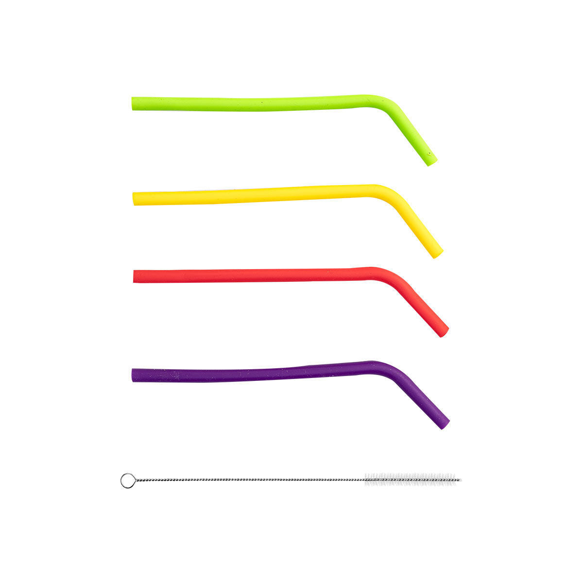 Καλαμάκια σιλικόνης 5 τεμαχίων της εταιρείας Estia σε ζωηρές αποχρώσεις πράσινου, κίτρινου, κόκκινου και μωβ, ιδανικά για καθημερινή χρήση στο σπίτι ή εκτός. Κατασκευασμένα από εύκαμπτη και ανθεκτική σιλικόνη, προσφέρουν άνεση κατά την κατανάλωση κρύων ή ζεστών ροφημάτων, ενώ αποτελούν οικολογική εναλλακτική στα πλαστικά καλαμάκια μιας χρήσης. Το σετ περιλαμβάνει ειδικό μεταλλικό βουρτσάκι για εύκολο και αποτελεσματικό καθαρισμό στο εσωτερικό τους. Μια πρακτική και χρωματιστή επιλογή που προσθέτει χαρούμενη διάθεση σε κάθε ποτήρι και συμβάλλει σε έναν πιο βιώσιμο τρόπο ζωής.