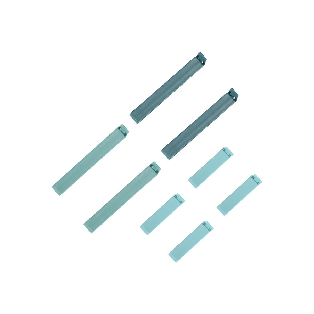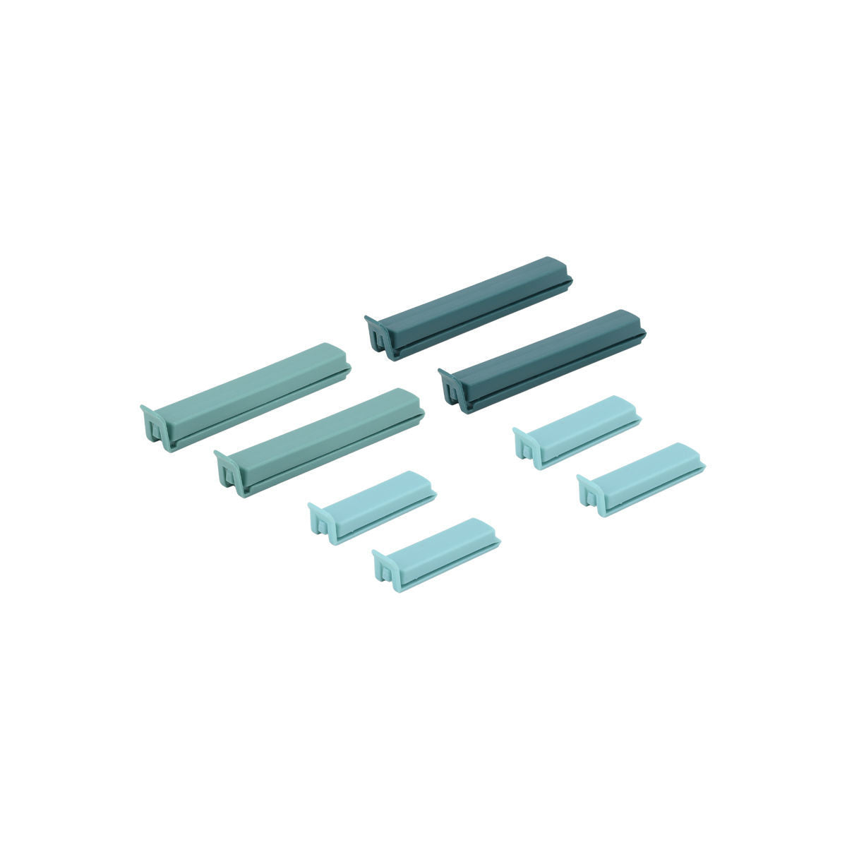 Σετ κλιπ για σακούλες τροφίμων της εταιρείας Estia από τη σειρά Homely σε απόχρωση μέντας, ιδανικά για τη σωστή αποθήκευση και διατήρηση των τροφίμων. Το σετ περιλαμβάνει 12 τεμάχια σε δύο διαφορετικά μεγέθη, ώστε να προσαρμόζονται εύκολα σε διάφορους τύπους συσκευασιών. Ο εργονομικός σχεδιασμός τους εξασφαλίζει σταθερό κλείσιμο, προστατεύοντας το περιεχόμενο από υγρασία και αέρα. Κατασκευασμένα από ανθεκτικό υλικό, αποτελούν μια κομψή επιλογή που προσθέτει τάξη και φροντίδα στην καθημερινή οργάνωση της κουζίνας σας.