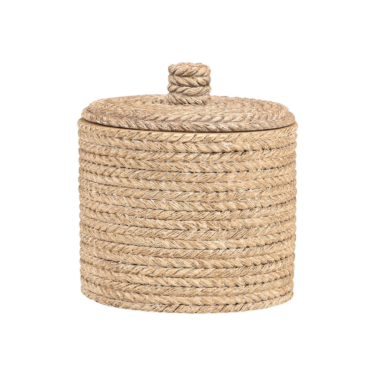 Το δοχείο της σειράς Nautica συνδυάζει φυσική αισθητική και πρακτικότητα, με σχεδιασμό που μιμείται την πλέξη σχοινιού για μια ζεστή, θαλασσινή πινελιά στο μπάνιο σας. Κατασκευασμένο από ανθεκτική ρητίνη, προσφέρει σταθερότητα και μεγάλη αντοχή στην καθημερινή χρήση, ενώ το καπάκι του εφαρμόζει άψογα για να κρατά το περιεχόμενο προστατευμένο. Ένα πρακτικό δοχείο που θα διατηρήσει τον χώρο σας τακτοποιημένο και οργανωμένο.