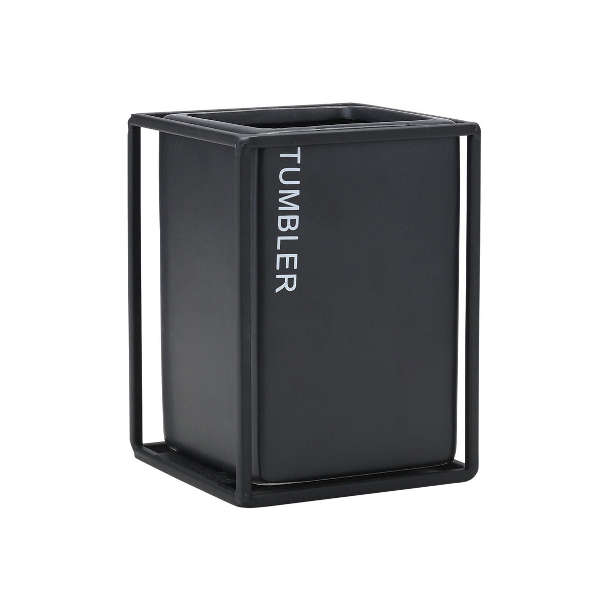 Ποτηράκι μπάνιου σε μαύρο χρώμα από τη συλλογή Cage της Estia. Κατασκευασμένο από κεραμικό υλικό, πλαισιωμένο με μεταλλική μαύρη βάση που του δίνει μοντέρνο, γεωμετρικό χαρακτήρα. Ιδανικό για την οργάνωση της οδοντόβουρτσας ή μικρών καλλυντικών, βοηθά στη διατήρηση της καθαριότητας και της τάξης στο μπάνιο σας. Πρακτικό, κομψό και χρήσιμο για καθημερινή χρήση και ευκολία στο μπάνιο σας.