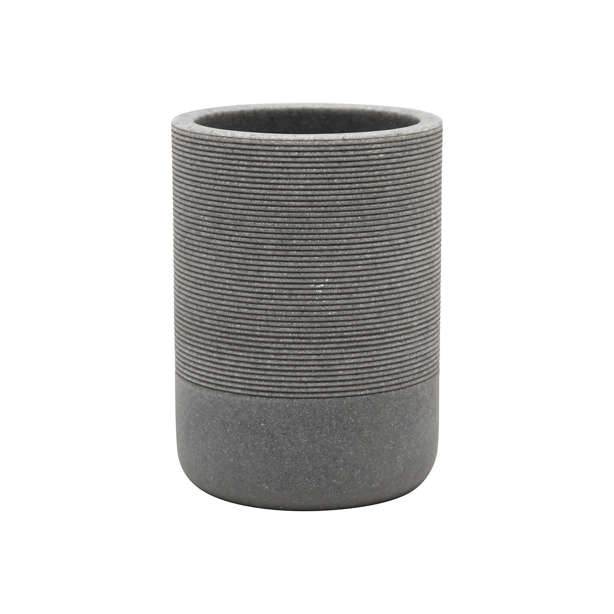 Ποτηράκι μπάνιου της σειράς Stone από την Estia, σε κομψό γκρι χρώμα και κατασκευασμένο από ανθεκτική ρητίνη. Η επιφάνεια με τις λεπτές οριζόντιες γραμμές προσθέτει μια μοντέρνα υφή που θυμίζει φυσική πέτρα, δίνοντας στο μπάνιο μια καθαρή και ισορροπημένη αισθητική. Ιδανικό για την οργάνωση της οδοντόβουρτσας ή μικρών αξεσουάρ, συμβάλλοντας στη διατήρηση της τάξης και της καθημερινής υγιεινής.