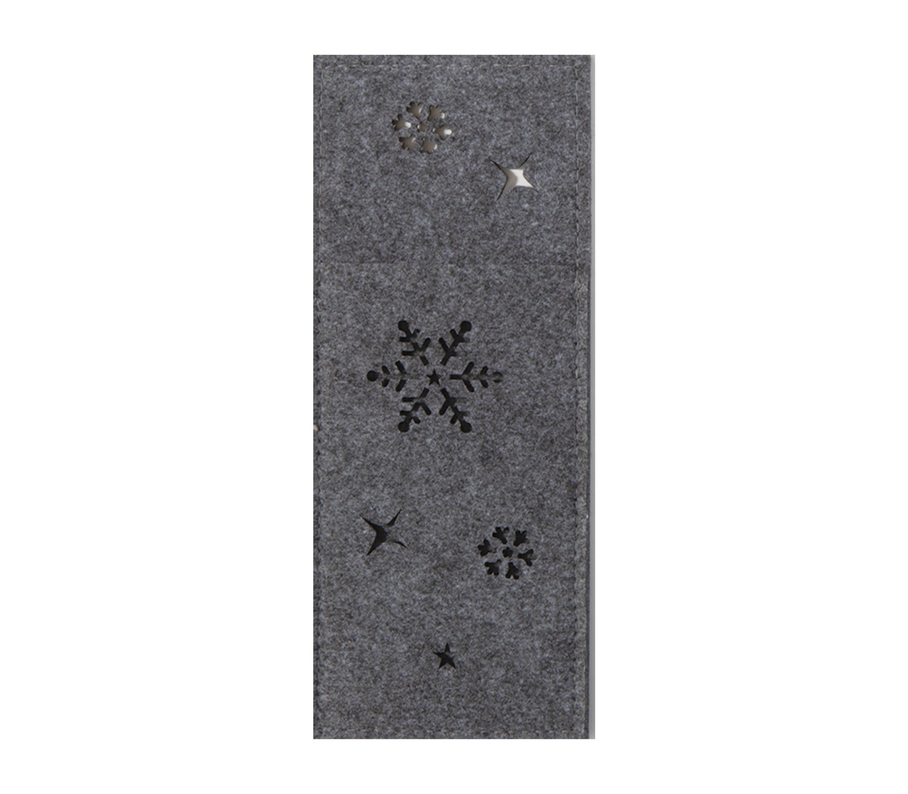 Χριστουγεννιάτικη θήκη μαχαιροπήρουνων Snow Felt της εταιρείας Nef-Nef Homeware, σε γκρι χρώμα και σετ 2 τεμαχίων. Κατασκευασμένη από μαλακό τσόχινο ύφασμα, με κοψίματα σε σχέδιο χιονονιφάδας και αστεριών, προσθέτει κομψή και γιορτινή πινελιά στο χριστουγεννιάτικο τραπέζι του ρεβεγιόν. Ιδανική επιλογή για να ολοκληρώσετε τη διακόσμηση με ζεστό, φυσικό στυλ.