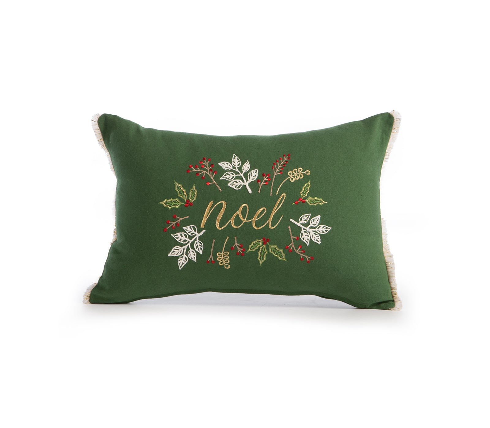 Χριστουγεννιάτικο διακοσμητικό μαξιλάρι Noel Verde της εταιρείας Nef-Nef Homeware, σε πράσινη βάση με κεντημένα φύλλα και κόκκινους καρπούς γύρω από τη χρυσή επιγραφή noel. Διαθέτει περιμετρικά εκρού κρόσσια, προσθέτοντας μια κομψή πινελιά στο σχέδιο. Μια εκλεπτυσμένη επιλογή για να στολίσει τον χώρο με φυσική γιορτινή λάμψη.