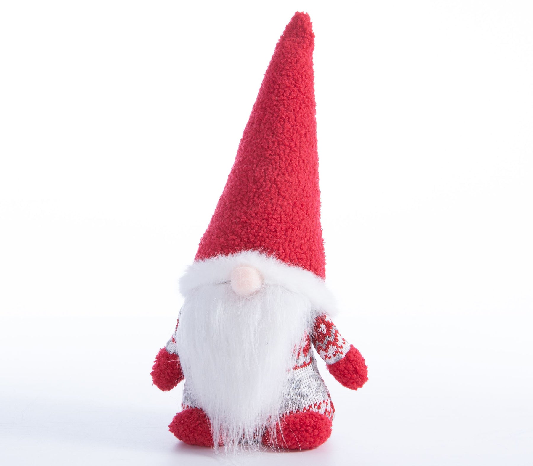 Χριστουγεννιάτικο στοπ πόρτας σε σχήμα νάνου με κόκκινο σκούφο και πλεκτές λεπτομέρειες