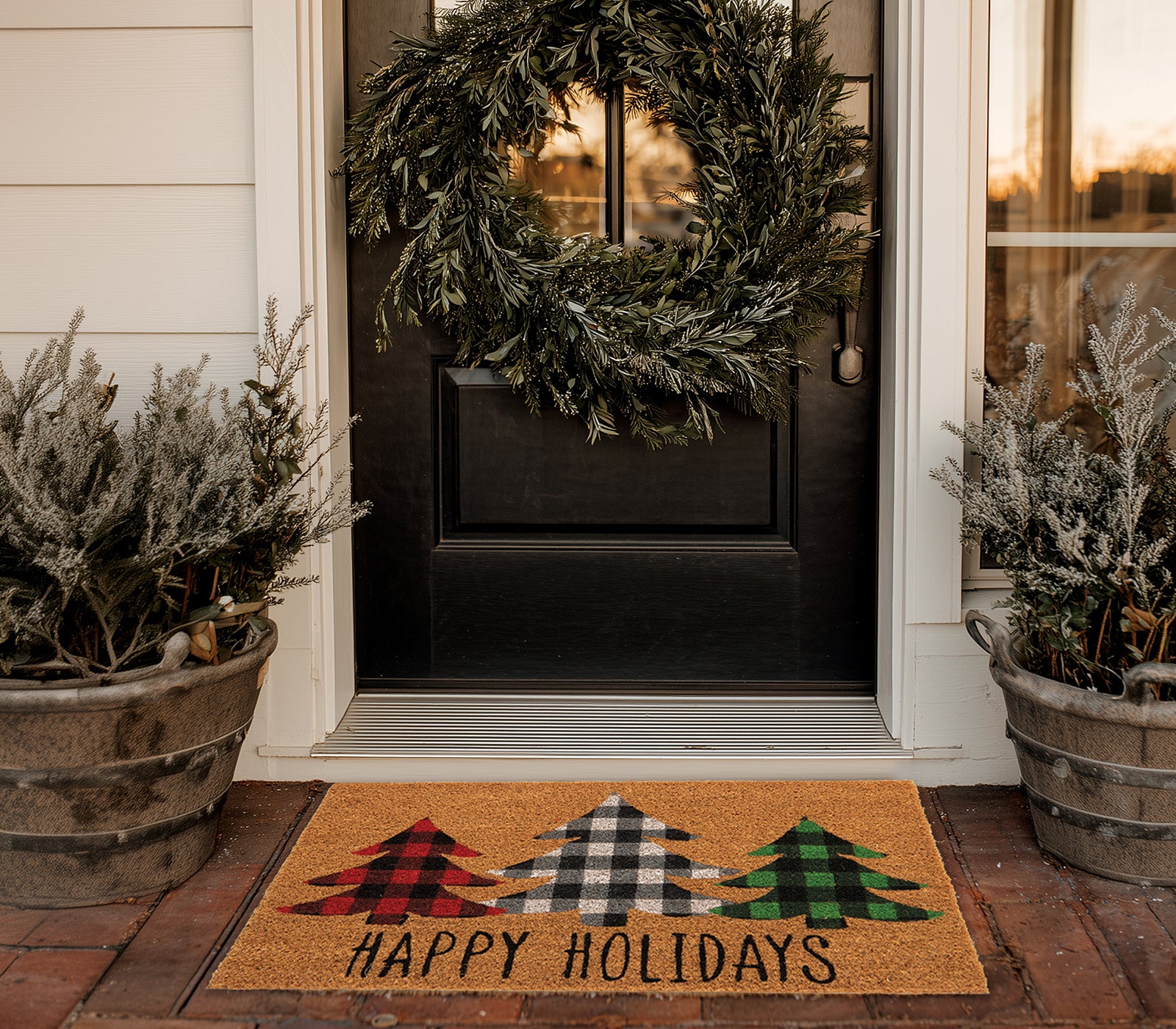 Χριστουγεννιάτικο Ταπέτο Εισόδου "Trees of Joy" της εταιρίας Nef Nef Homeware διαστάσεων 40x60cm σε φυσική μπεζ απόχρωση. Δώστε χαρούμενη και γιορτινή ατμόσφαιρα στην είσοδο του σπιτιού σας με το ταπέτο εισόδου της Nef Nef Homeware. Με σχέδιο τριών χριστουγεννιάτικων δέντρων σε κόκκινο, γκρι και πράσινο καρό μοτίβο δημιουργεί την πιο γιορτινή και ζεστή πρώτη εντύπωση. Κατασκευασμένο από 100% κοκοφοίνικα, ανθεκτικό υλικό που προστατεύει από σκόνες, λάσπες και υγρασία, ενώ καθαρίζεται εύκολα για καθημερινή πρακτικότητα. Διαθέτει λάστιχο στην κάτω πλευρά που το καθιστά ιδανικό για κάθε είσοδο. Υποδεχτείτε τους καλεσμένους της με στυλ και χριστουγεννιάτικο κέφι.