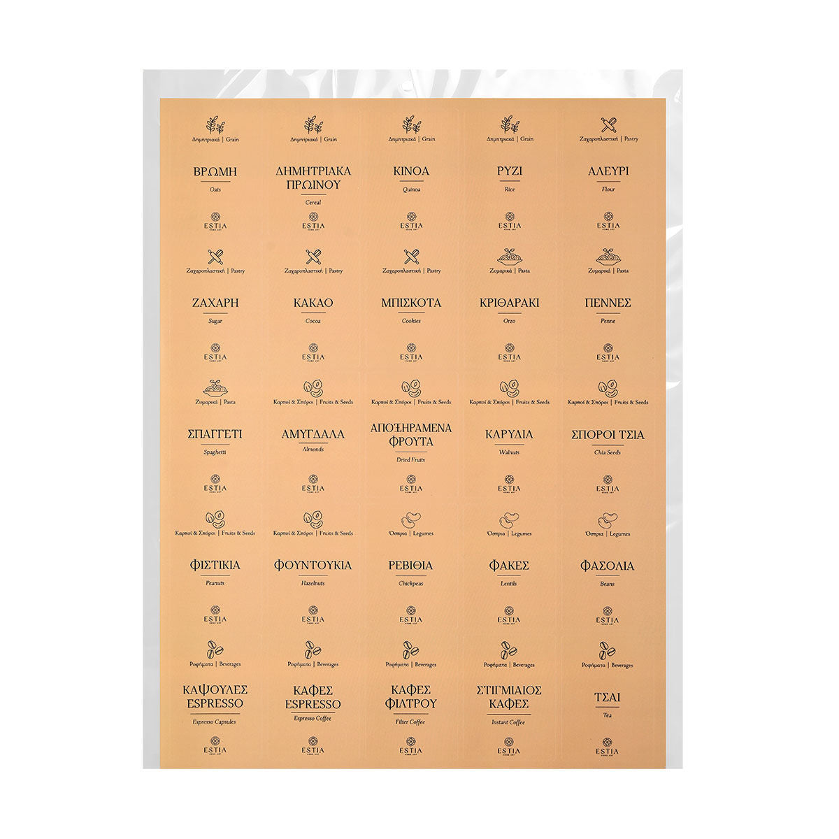 Ετικέτες Για Δοχεία Αποθήκευσης Φαγητού 36τμχ Πορτοκαλί Estia