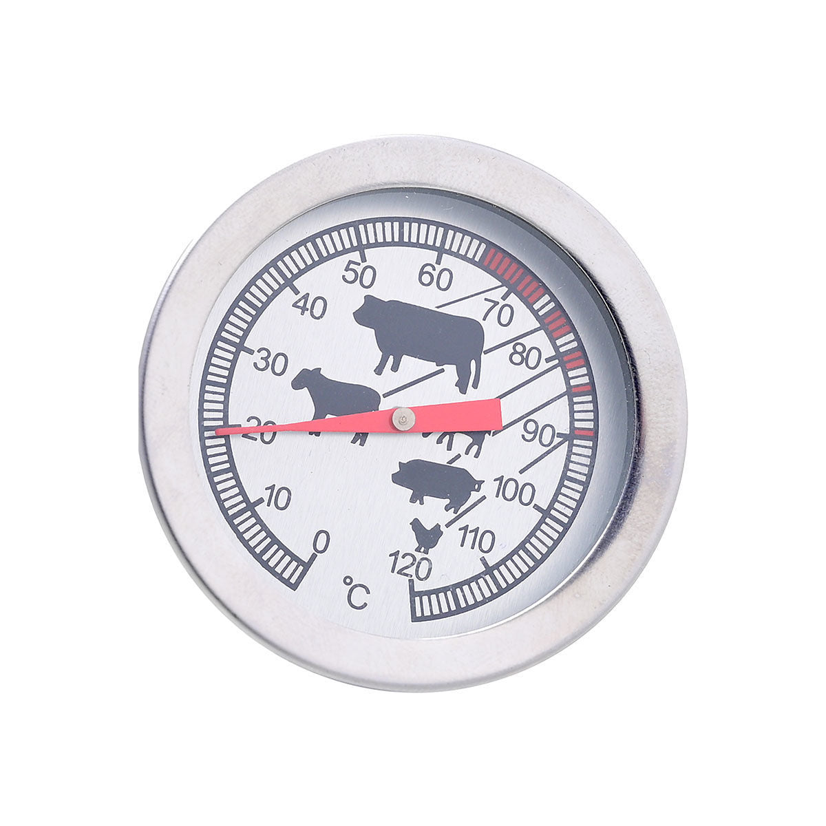Αναλογικό θερμόμετρο κρέατος Estia, κατασκευασμένο από ανοξείδωτο ατσάλι υψηλής ποιότητας. Κατάλληλο για χρήση σε φούρνο κουζίνας, επιτρέπει τον ακριβή έλεγχο της θερμοκρασίας κατά το ψήσιμο, διασφαλίζοντας τέλειο αποτέλεσμα σε κάθε είδος κρέατος. Αντέχει θερμοκρασίες έως 120°C και διαθέτει ευανάγνωστη αναλογική ένδειξη με εικονίδια για διαφορετικά είδη κρέατος.