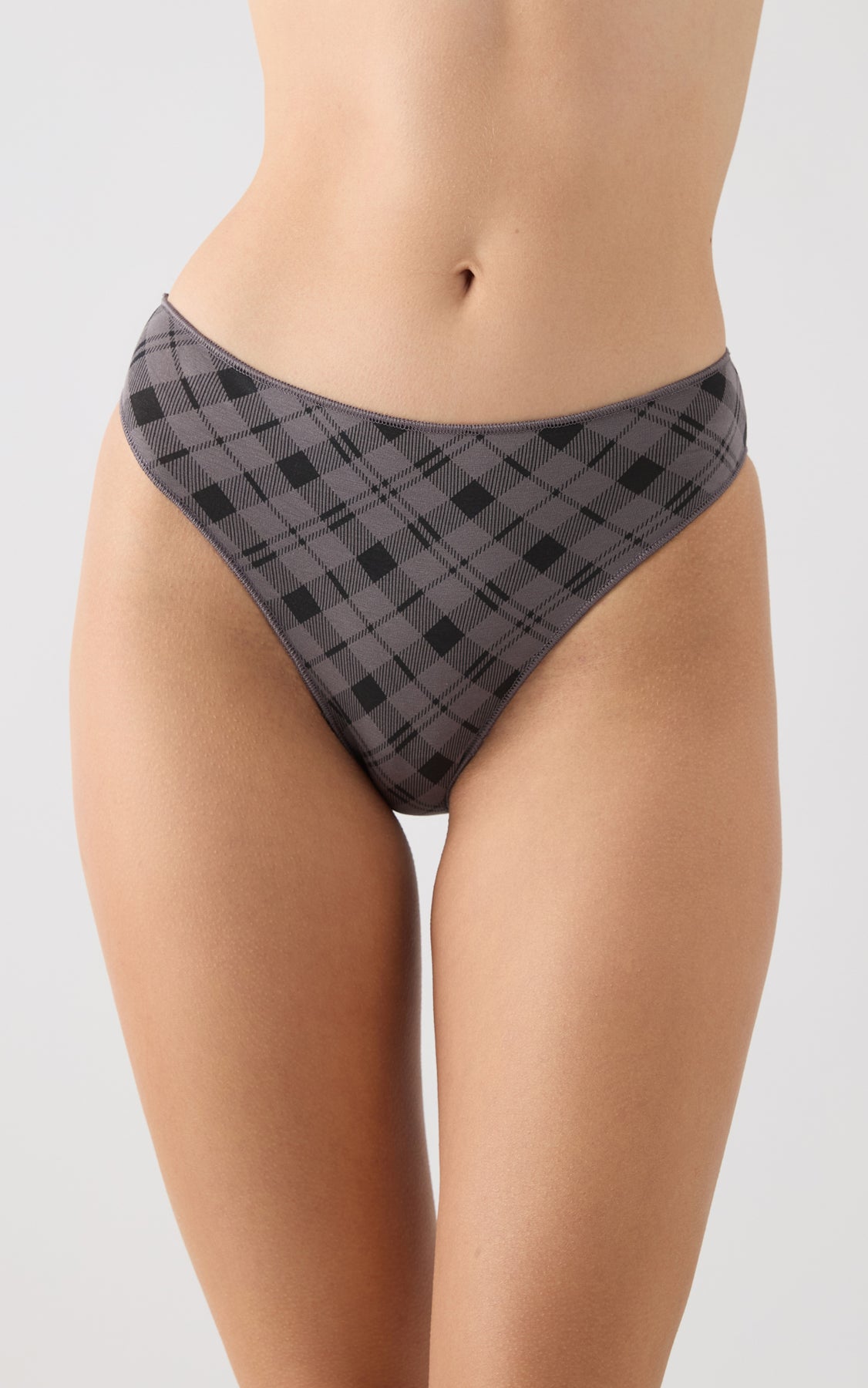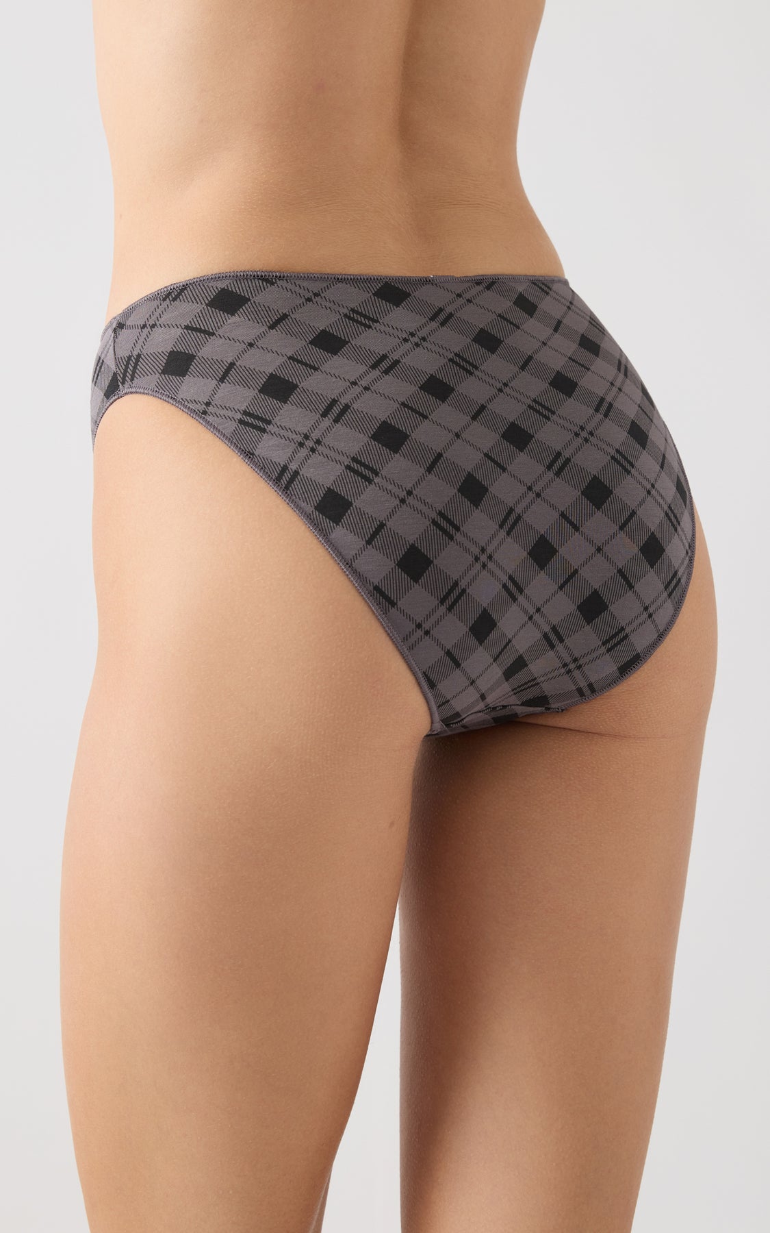 Γυναικείο Σλιπ Σετ 2τμχ Μαύρο-Γκρι Καρό Σκούρο Ψηλόμεσο Ολόκληρο Μοντάλ Minerva
