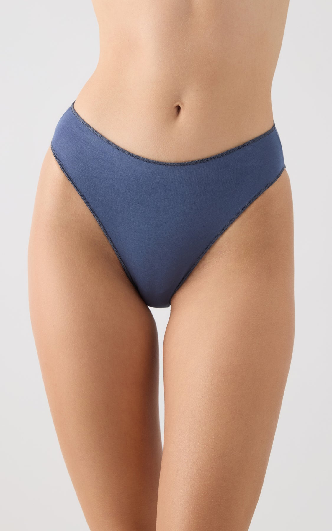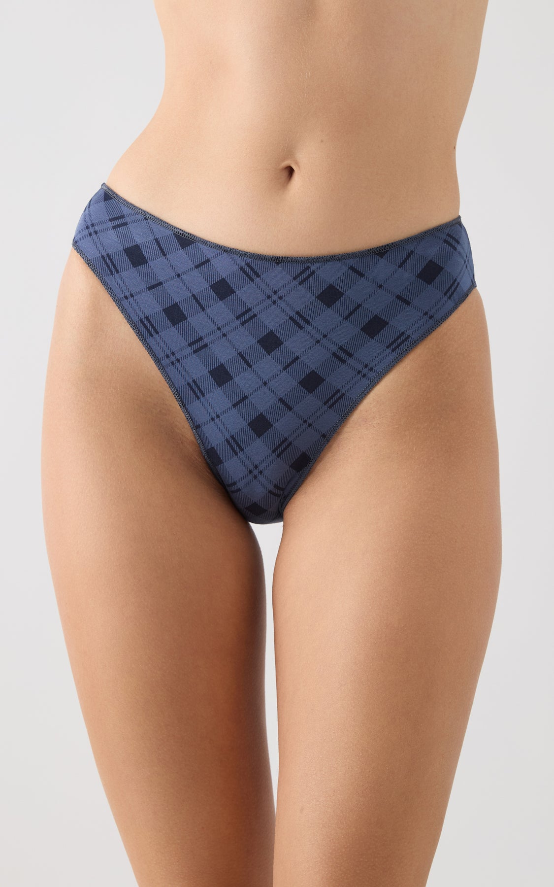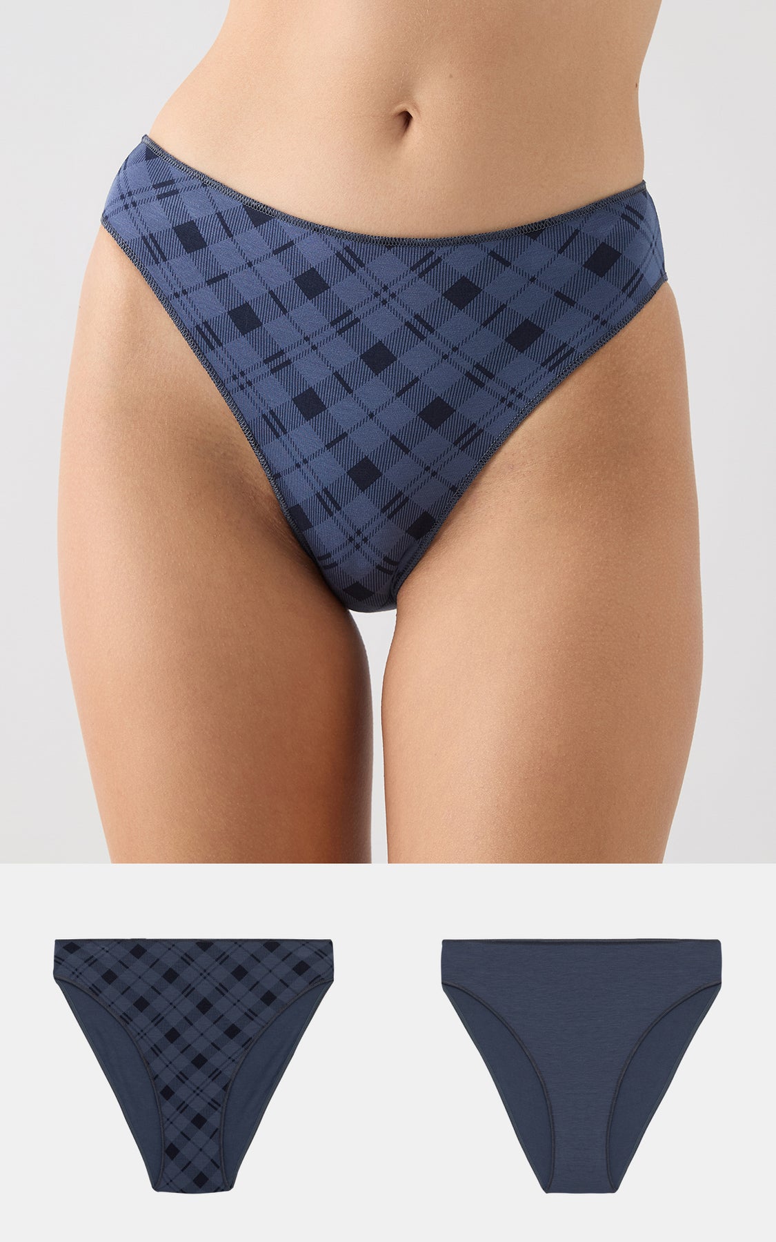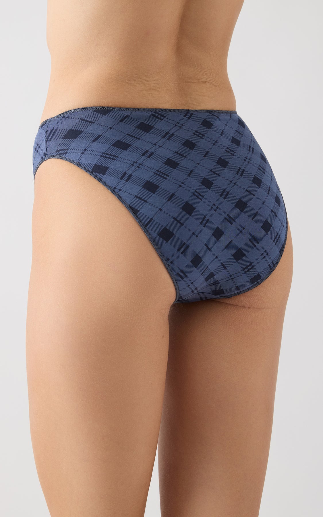 Γυναικείο Σλιπ Σετ 2τμχ Μπλε-Καρό Σκούρο Ψηλόμεσο Ολόκληρο Μοντάλ Minerva