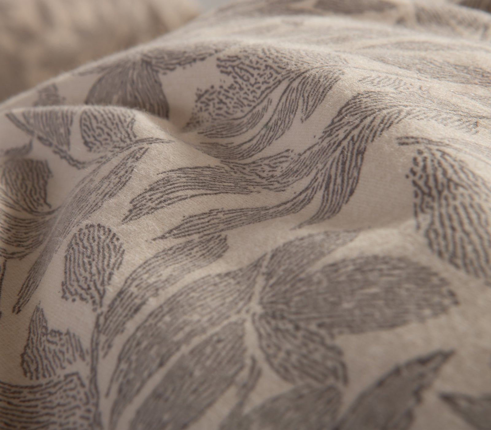 Σετ σεντόνια king size σε γκρι τόνους με κομψό φλοράλ σχέδιο, από τη συλλογή της εταιρείας Nef-Nef Homeware. Κατασκευασμένα από 100% βαμβακερό ύφασμα με επεξεργασία φανέλας και από τις δύο πλευρές. Περιλαμβάνει ένα πανωσέντονο διάστασης 270x260cm, ένα κατωσέντονο με λάστιχο διάστασης 180x200+32cm και δύο μαξιλαροθήκες 52x72cm.Το πανωσέντονο και η μαξιλαροθήκη διαθέτουν εντυπωσιακό φλοράλ μοτίβο σε γκρι τόνους, ενώ το κατωσέντονο διατηρεί το ίδιο σχέδιο σε πιο ανοιχτόχρωμη μπεζ απόχρωση.Ένα σετ που αποπνέει ζεστασιά και φυσική κομψότητα.