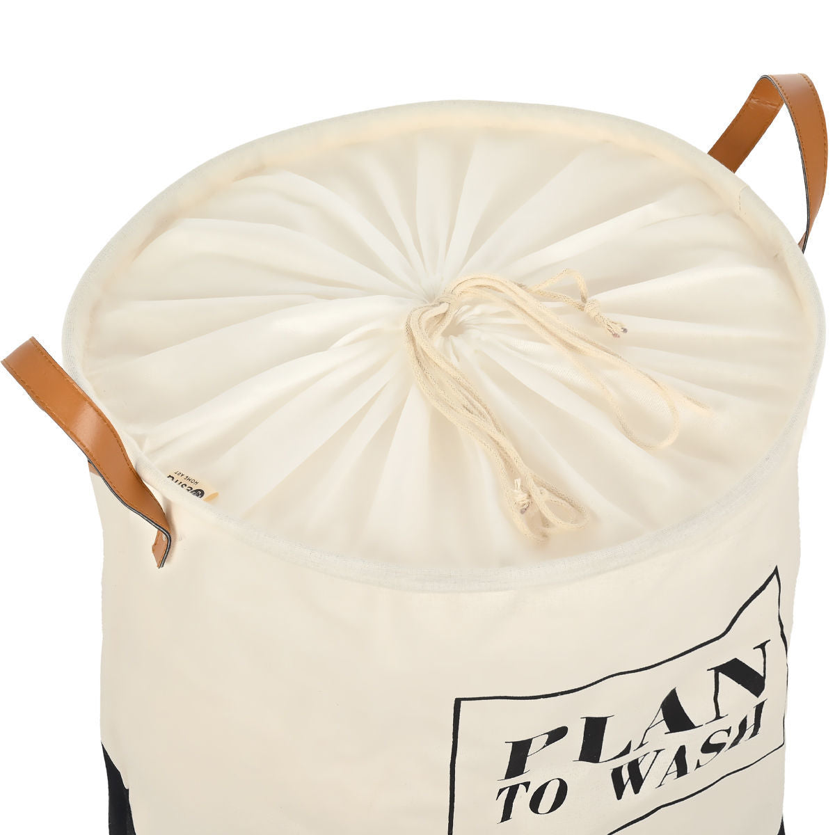 Πτυσσόμενο καλάθι απλύτων Plan της εταιρείας Estia με υφασμάτινη κατασκευή σε εκρού και μαύρο χρώμα, διακοσμημένο με μοντέρνα γραφή που δίνει ξεχωριστό χαρακτήρα στον χώρο. Διαθέτει χωρητικότητα 60 λίτρων και πρακτικά χερούλια για εύκολη μεταφορά, ενώ το επάνω μέρος κλείνει με κορδόνι για να προστατεύεται το περιεχόμενο. Ο ελαφρύς και πτυσσόμενος σχεδιασμός του επιτρέπει εύκολη αποθήκευση όταν δεν χρησιμοποιείται, προσφέροντας μια κομψή και τακτοποιημένη λύση για το μπάνιο ή το υπνοδωμάτιο.