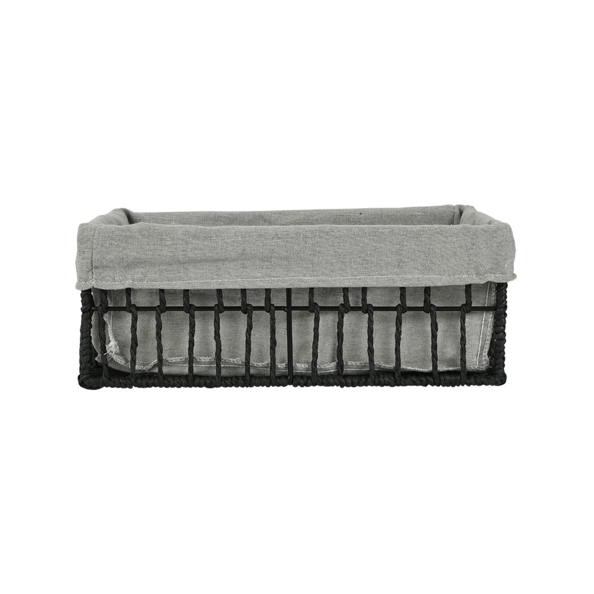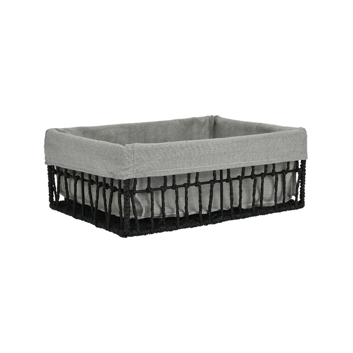 Καλάθι αποθήκευσης και οργάνωσης Nest της Estia σε μαύρο χρώμα, διάστασης 32x24x12cm, κατασκευασμένο από ανθεκτικό paper rope με υφασμάτινη επένδυση. Η επένδυση αφαιρείται εύκολα και πλένεται, διευκολύνοντας τη φροντίδα του. Δεν διαθέτει καπάκι, ώστε να βλέπετε άμεσα το περιεχόμενο και να βρίσκετε γρήγορα ό,τι χρειάζεστε. Ο σταθερός πλεκτός σχεδιασμός του προσφέρει κομψή εμφάνιση και το καθιστά ιδανικό για μπάνιο, κουζίνα, ράφια ή συρτάρια, συμβάλλοντας στην οργάνωση του χώρου σας.