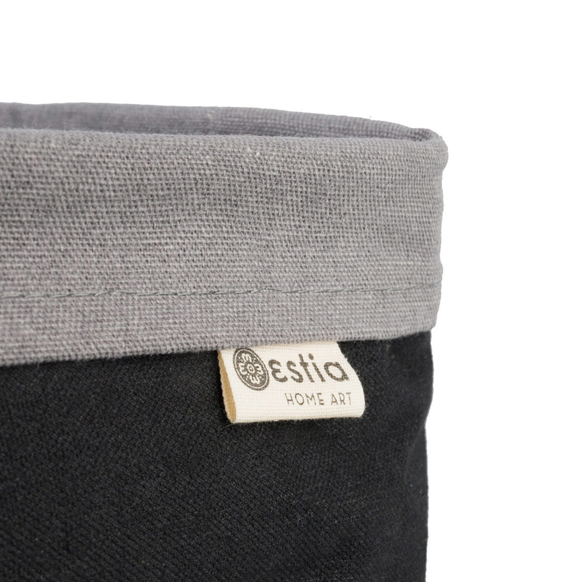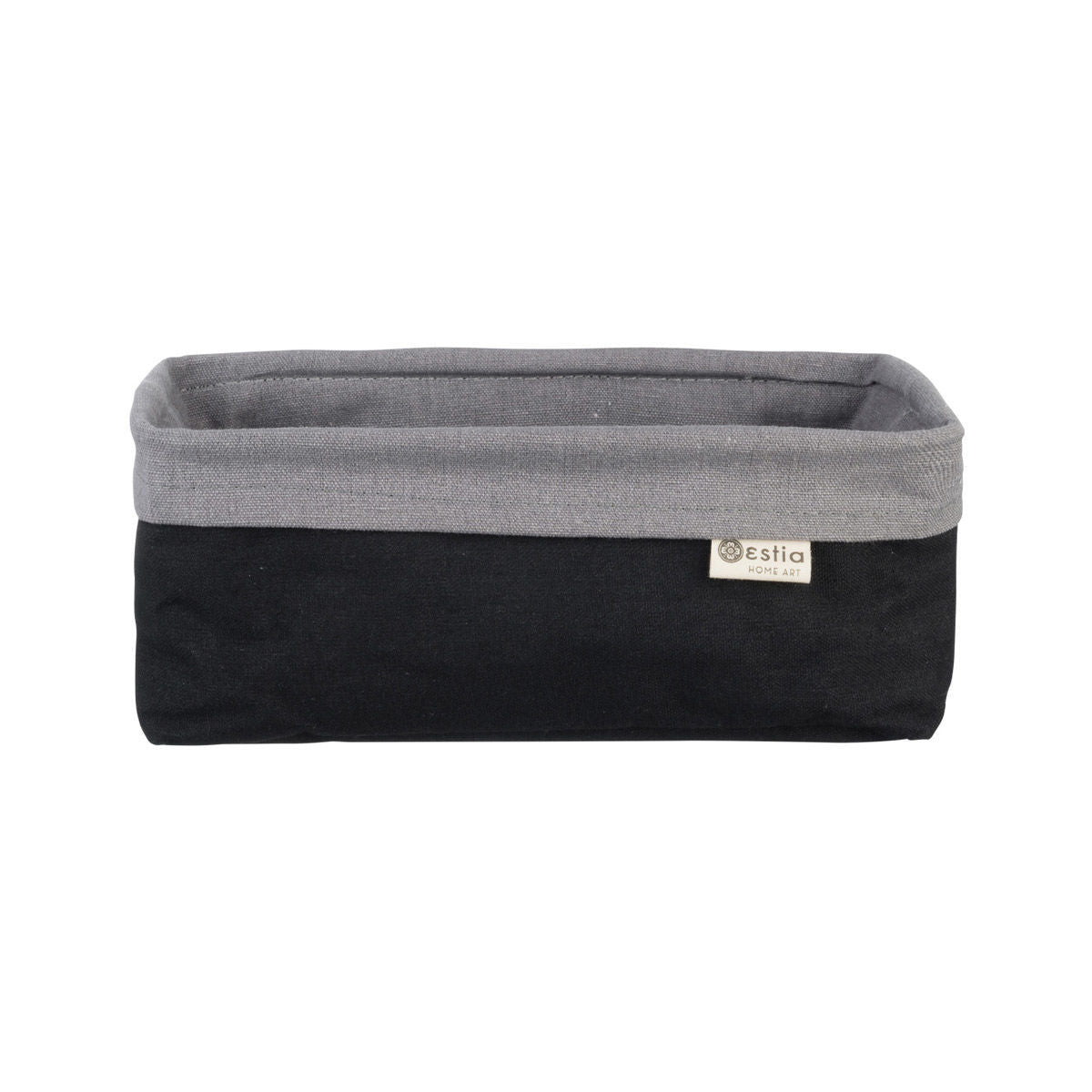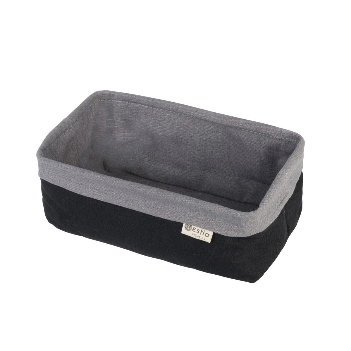 Καλάθι αποθήκευσης και οργάνωσης Fjord της Estia σε απόχρωση μαύρο-γκρι, διάστασης 25x15x10cm, ιδανικό για μπάνιο, υπνοδωμάτιο ή ράφια. Είναι κατασκευασμένο από υφασμάτινο υλικό με διπλή όψη, ώστε να αλλάζετε εύκολα το look ανάλογα με το χώρο σας. Η επένδυση είναι μη αποσπώμενη, προσφέροντας σταθερή μορφή, ενώ το ανοιχτό design επιτρέπει να βλέπετε εύκολα το περιεχόμενο. Μια πρακτική λύση για μικροαντικείμενα, που διατηρεί τον χώρο οργανωμένο.