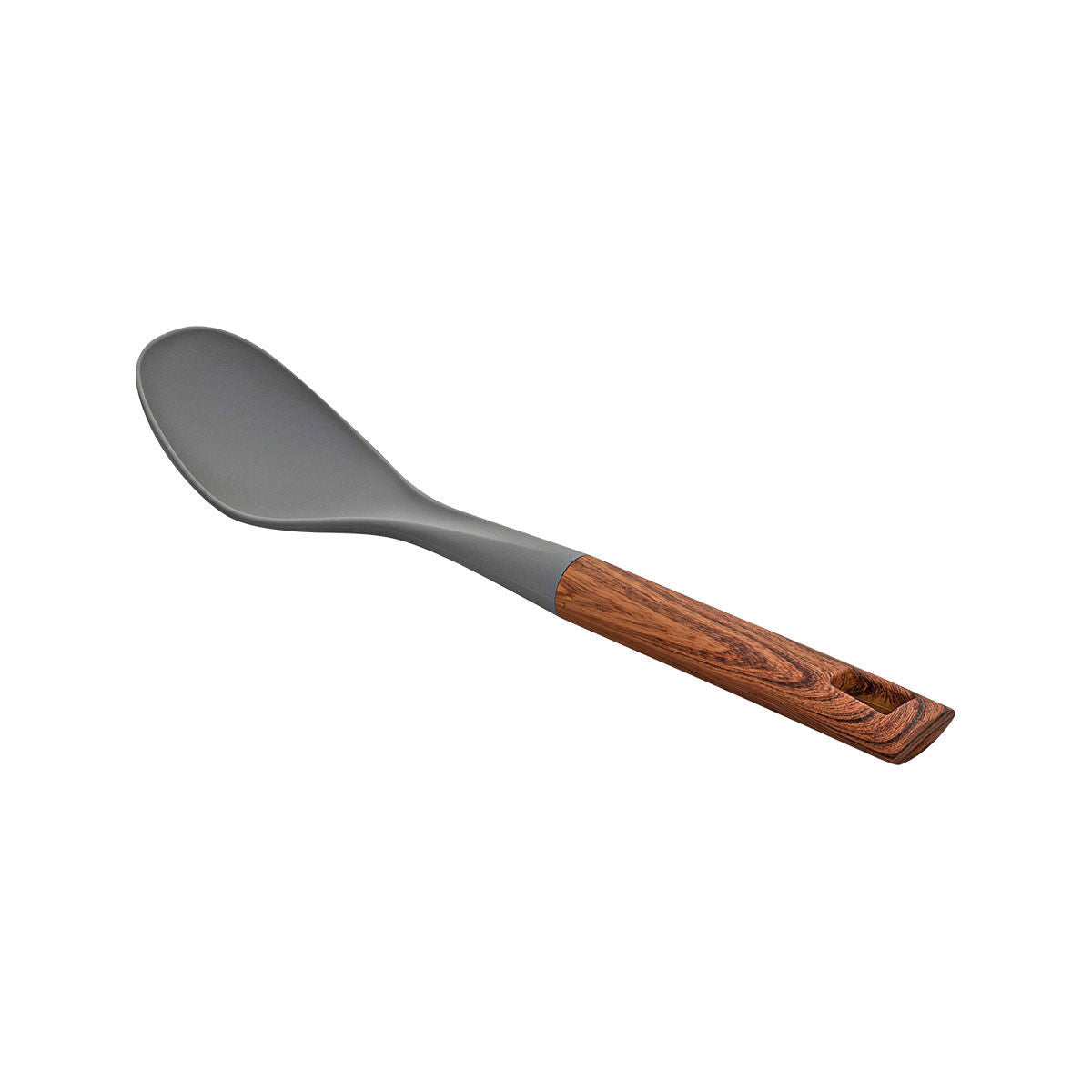 Κουτάλα ραγού Estia Stone σε κομψό γκρι χρώμα με λαβή σε απομίμηση ξύλου, ιδανική για αντικολλητικά και κεραμικά σκεύη. Κατασκευασμένη από ανθεκτικό πλαστικό, αντέχει σε θερμοκρασίες έως 220°C, προσφέροντας ασφάλεια και προστασία για τα σκεύη σας. Διαθέτει εργονομική, αντιθερμική λαβή που εξασφαλίζει άνετο κράτημα, καθώς και οπή στο τελείωμα για εύκολο κρέμασμα. Μια πρακτική και ανθεκτική επιλογή για καθημερινό μαγείρεμα και σερβίρισμα.
