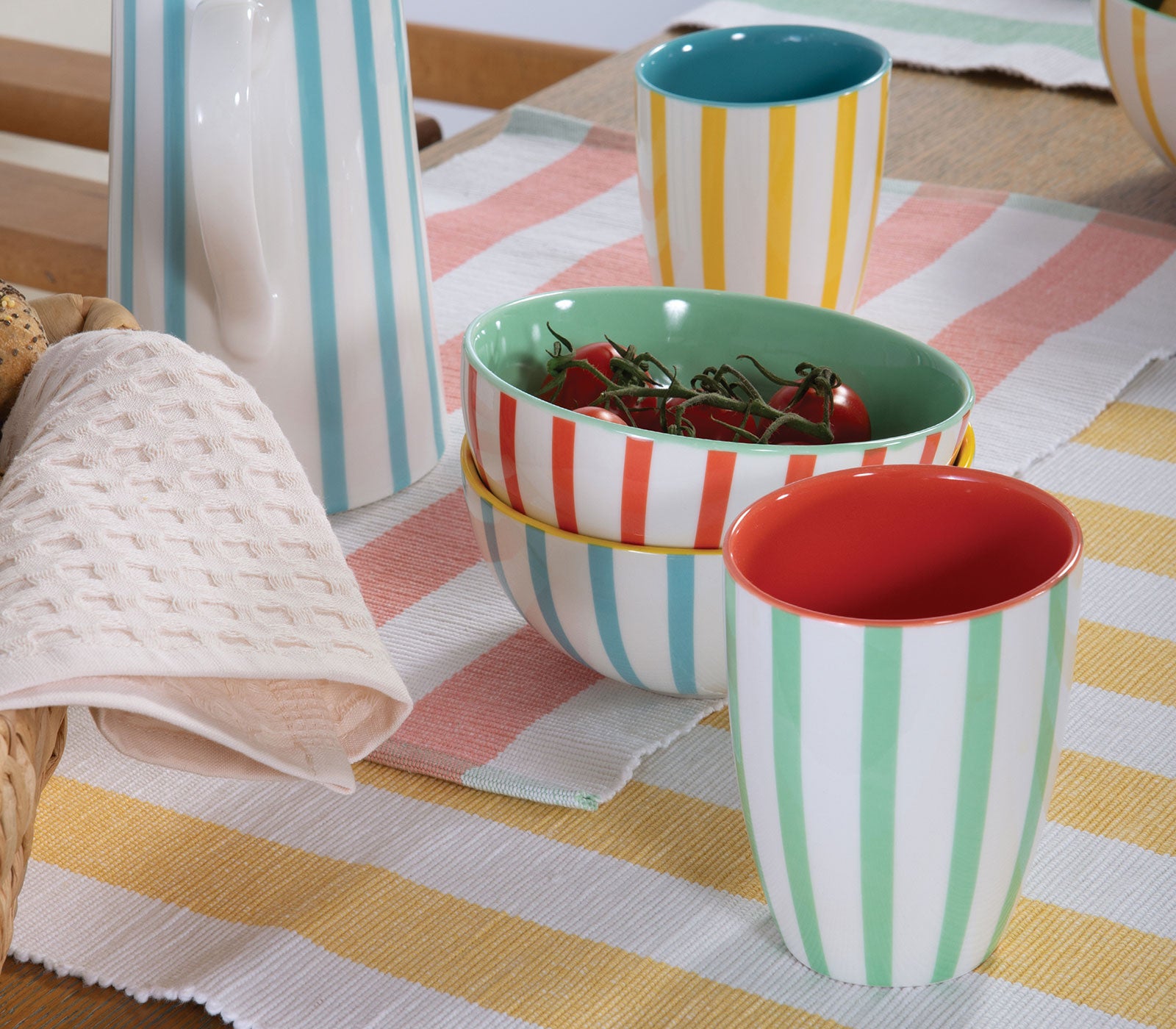 Κούπα κεραμική σε κίτρινο και λευκό χρώμα με ριγέ σχέδιο της εταιρείας Nef-Nef Homeware, κατασκευασμένη από ποιοτική κεραμική για καθημερινή χρήση. Διαθέτει ανθεκτική επιφάνεια, άνετη λαβή και εσωτερικό σε έντονη κίτρινη απόχρωση που δίνει μοντέρνα αντίθεση. Ιδανική για καφέ, τσάι ή ροφήματα, διατηρεί τη θερμοκρασία και καθαρίζεται εύκολα. Μια χαρούμενη επιλογή που γεμίζει την καθημερινότητά σας με χρώμα και θετική διάθεση.
