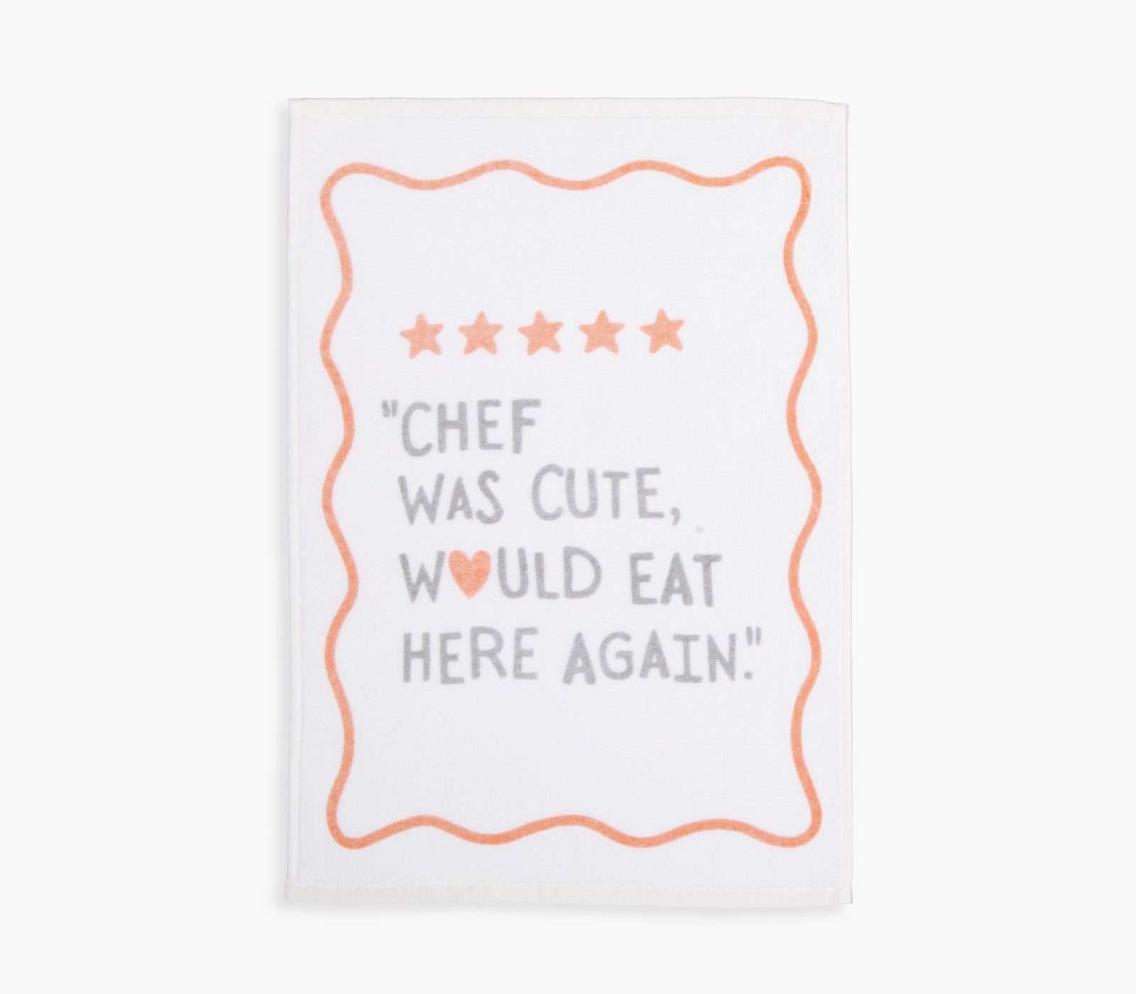 Ποτηρόπανο κουζίνας βελουτέ Chef was Cute της εταιρείας Nef-Nef Homeware, κατασκευασμένο από 100% βαμβάκι. Η βάση του έχει εκρού χρώμα, ενώ διαθέτει λέπτομέρειες με κοραλί και γκρι χρώμα. Τα έντονα χρώματα και το χαρούμενο μοτίβο δίνουν μια παιχνιδιάρικη πινελιά στον πάγκο της κουζίνας. Είναι ιδανικό για καθημερινή χρήση λόγω της εξαιρετικής του ποιότητας. Διαθέσιμο σε 3 αποχρώσεις.