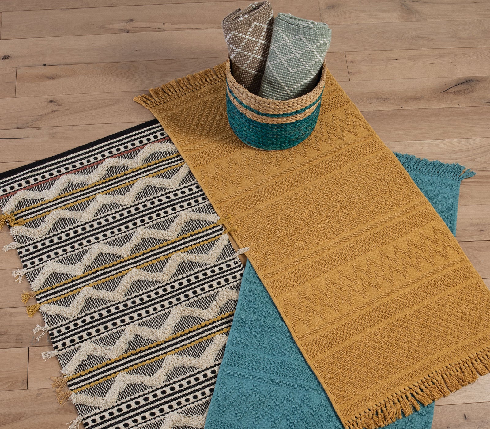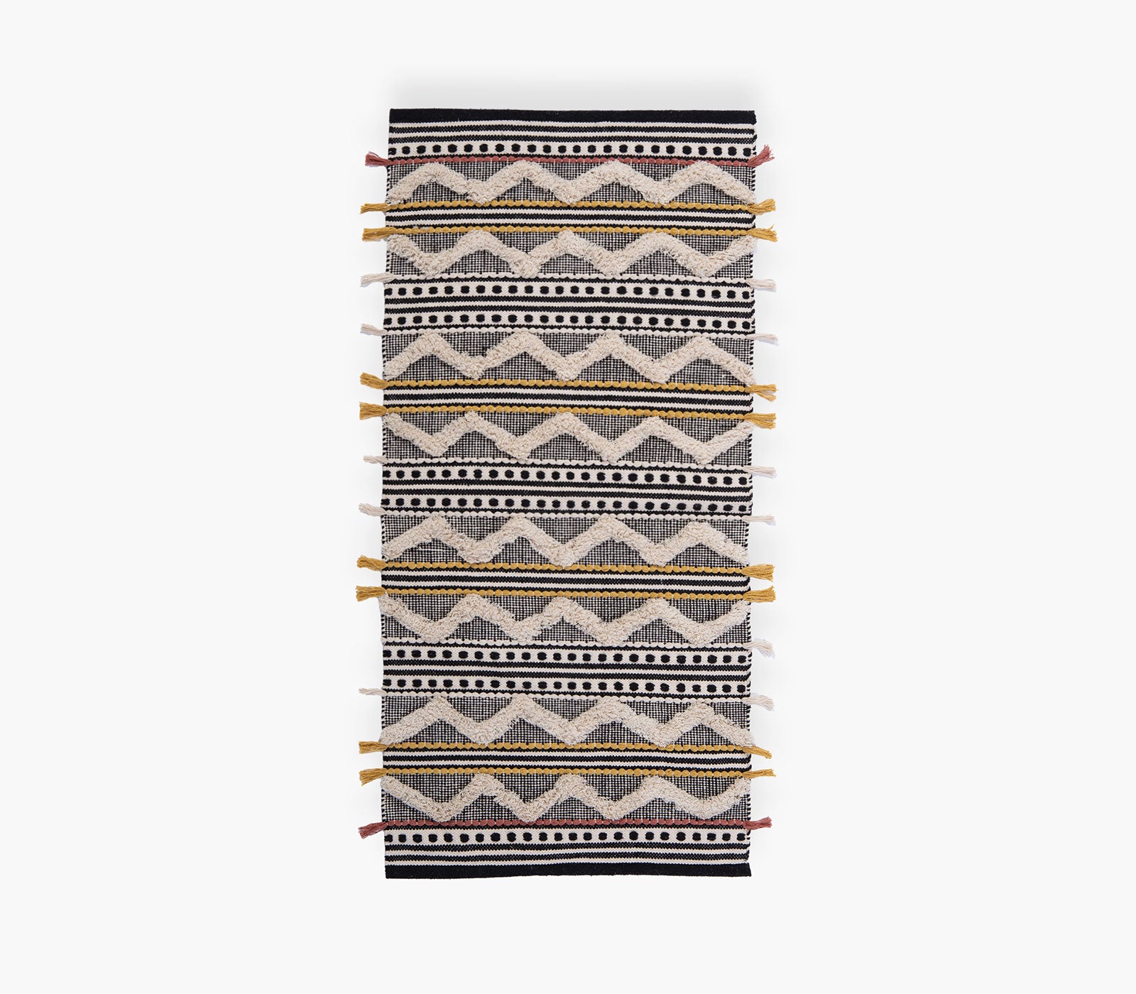 Μαύρο-εκρού χαλάκι κουζίνας με γεωμετρικό σχέδιο της εταιρείας Nef-Nef Homeware, κατασκευασμένο από βαμβάκι υψηλής ποιότητας με ανθεκτική και φυσική υφή. Διαθέτει υφαντό σχέδιο με διακριτικές χρωματικές λεπτομέρειες και διακοσμητικά κρόσσια που αναδεικνύουν το design. Ιδανικό για καθημερινή χρήση, προσφέρει σταθερότητα και άνεση στο πάτημα. Ταιριάζει εύκολα σε μοντέρνους και boho χώρους. Δώστε στην κουζίνα σας έναν ζεστό και στιλάτο χαρακτήρα που ξεχωρίζει.