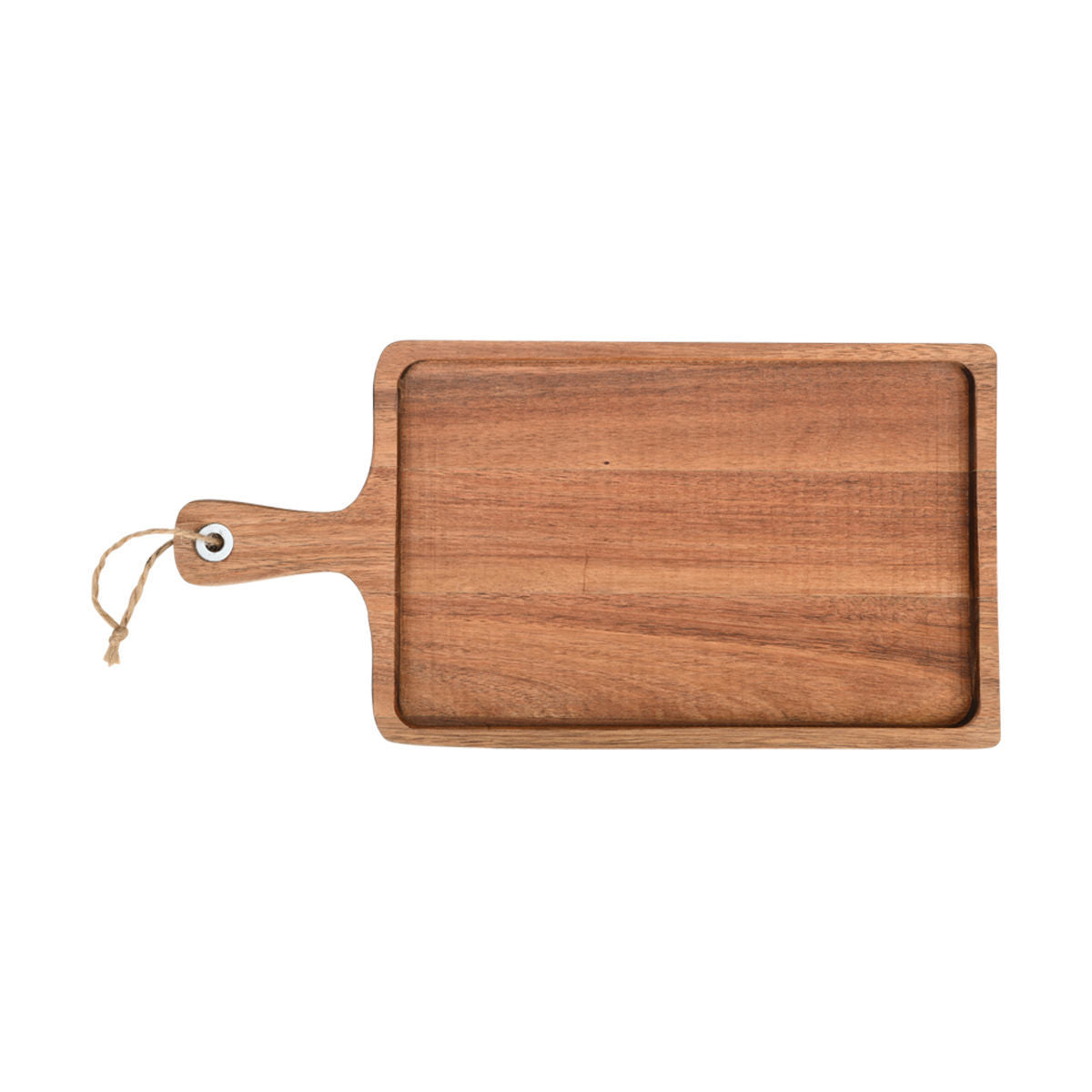 Επιφάνεια κοπής Allure Estia 44x22cm από φυσικό ξύλο ακακίας σε ζεστή απόχρωση, με ενσωματωμένη λαβή και σχοινάκι κρέμασης για άνετη χρήση και εύκολη αποθήκευση. Ανθεκτική και σταθερή επιφάνεια, κατάλληλη για κοπή και προετοιμασία τροφίμων, αλλά και για σερβίρισμα.