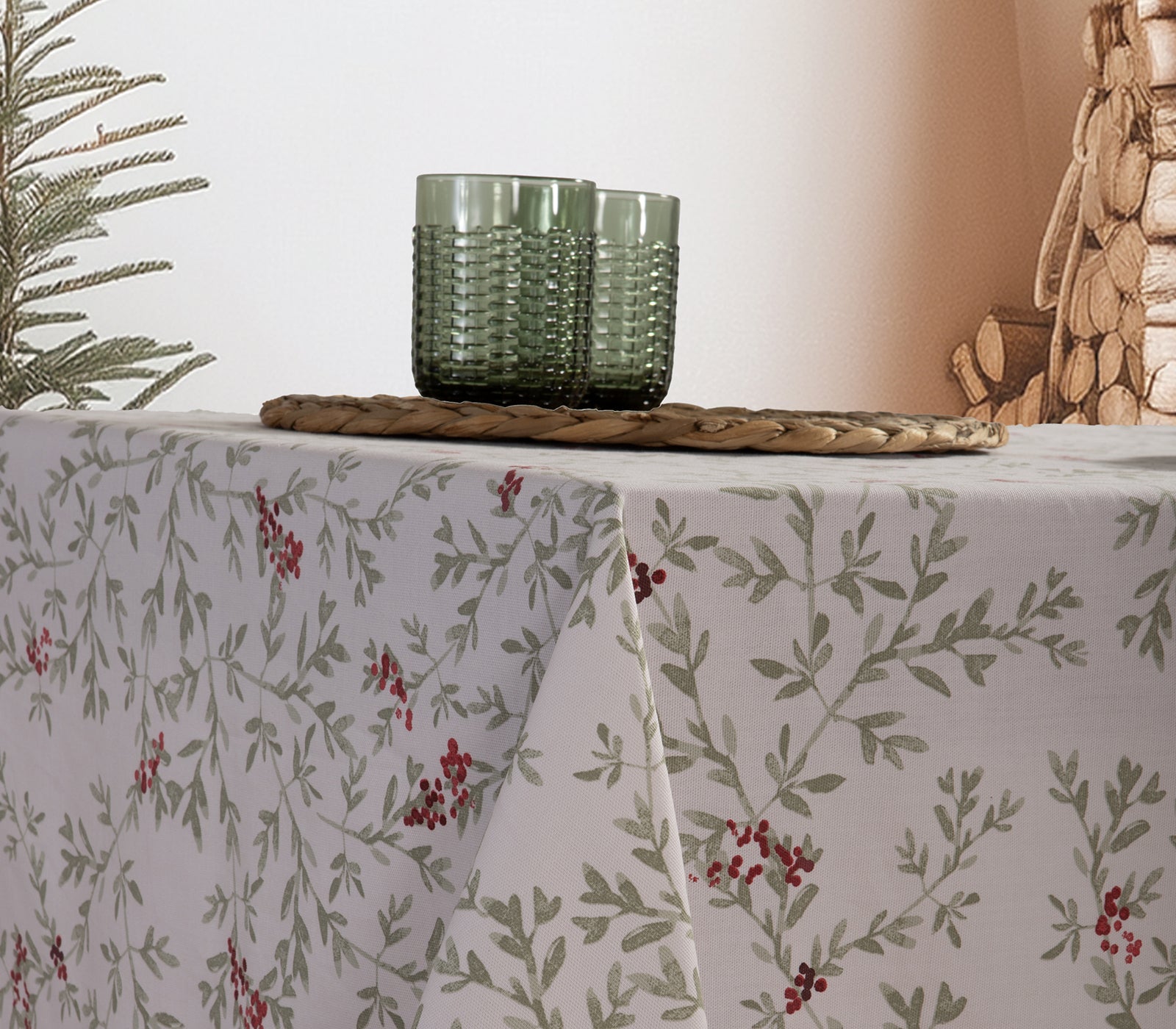 Χριστουγεννιάτικο τραπεζομάντηλο της εταιρείας Nef Nef Homeware, ιδανικό για να προσθέσετε μια γιορτινή πινελιά στο τραπέζι σας. Διαθέτει σχέδιο με κλαδιά γκι και κόκκινους καρπούς πάνω σε απαλό υπόλευκο φόντο, χαρίζοντας φυσική κομψότητα και ζεστή ατμόσφαιρα στον χώρο. Κατασκευασμένο από ανθεκτικό ύφασμα, συνδυάζει πρακτικότητα και στιλ, ενώ ταιριάζει υπέροχα τόσο σε καθημερινά όσο και σε γιορτινά τραπέζια. Μια όμορφη επιλογή για να υποδεχθείτε τις γιορτές και τους καλεσμένους σας.