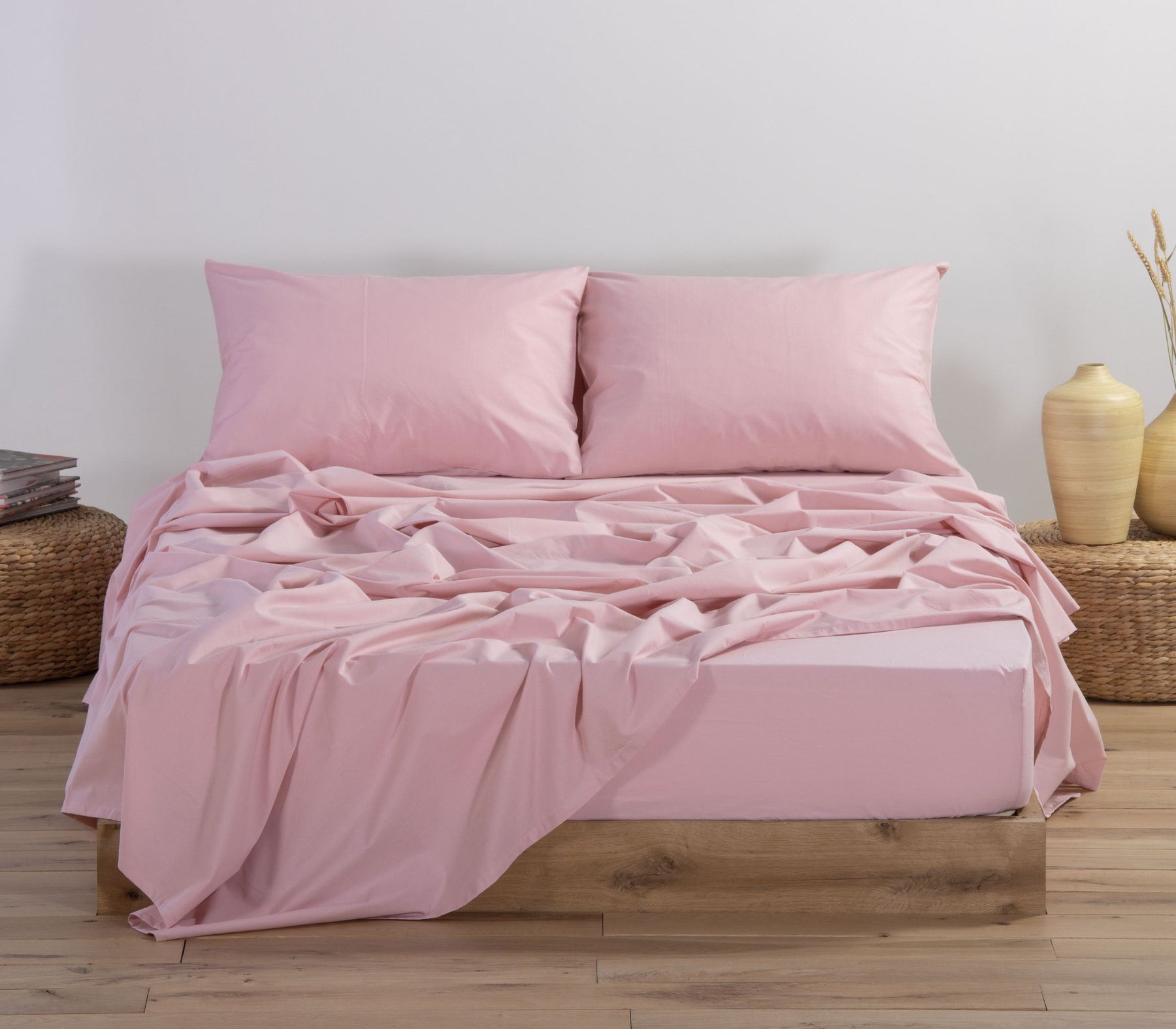 Μεμονωμένο Σεντόνι Ημίδιπλο Βαμβακερό Με Λάστιχο Basic Ροζ 120Χ200+30 Nef-Nef Homeware