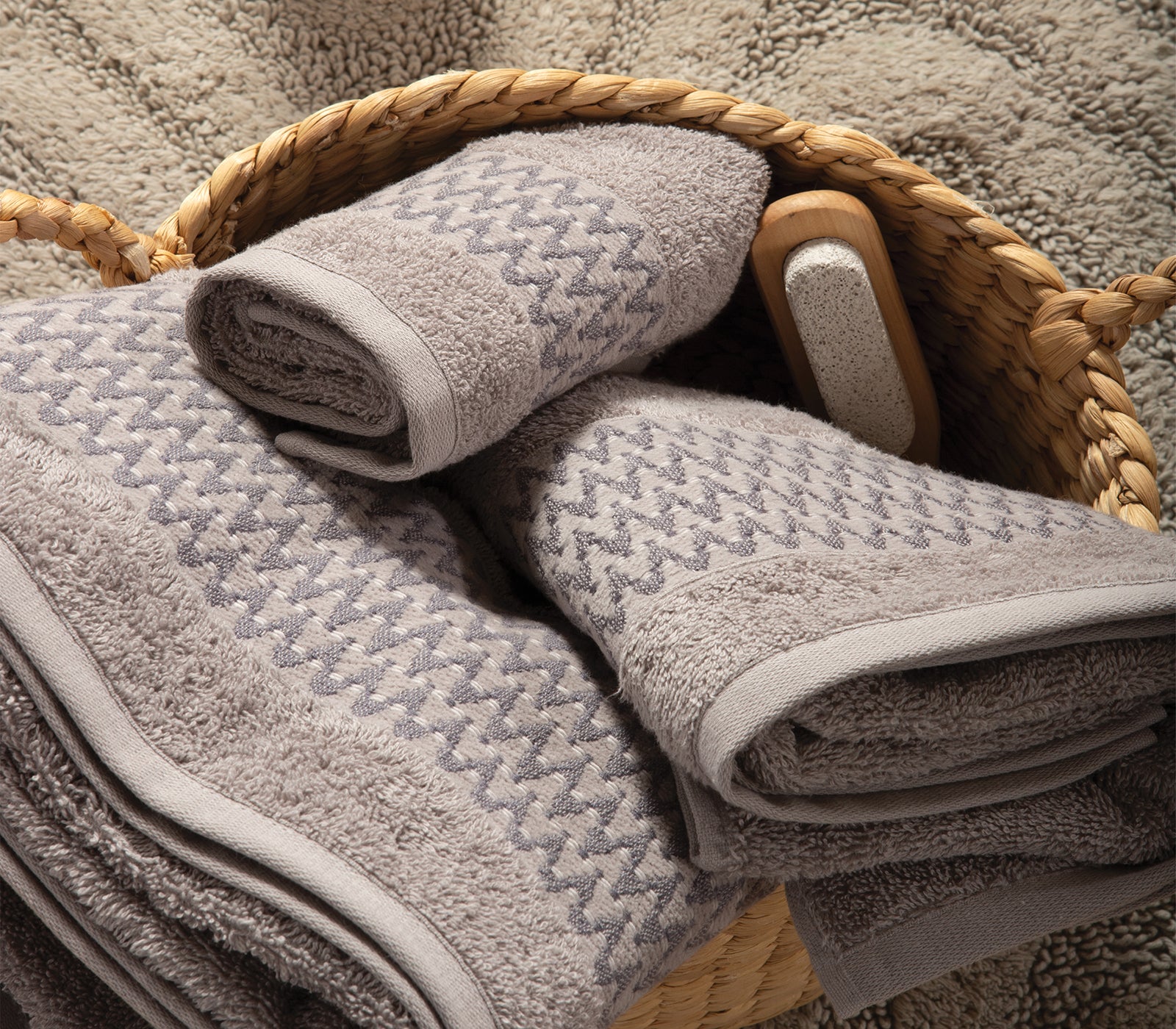 Γκρι πετσέτα μπάνιου Fonteste 70X140cm της εταιρείας Nef-Nef Homeware, κατασκευασμένη από 100% βαμβάκι με βάρος 500gr/m². Το ζακάρ σχέδιο με τα μοντέρνα γεωμετρικά μοτίβα σε γήινες αποχρώσεις χαρίζει κομψότητα και ιδιαίτερο χαρακτήρα στο μπάνιο σας. Η βαμβακερή της υφή προσφέρει απαλή αίσθηση στο δέρμα και υψηλή απορροφητικότητα, καθιστώντας την ιδανική επιλογή μετά το μπάνιο. Συνδυάστε το και με τις υπόλοιπες διαστάσεις του ίδιου σχεδίου, καθώς και με τα χαλάκια μπάνιου μας για ένα ολοκληρωμένο αποτέλεσμα.