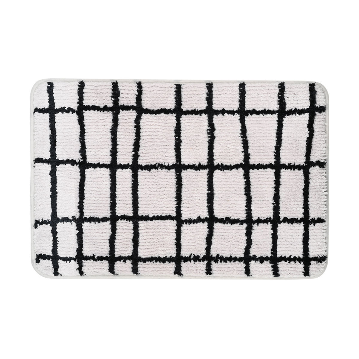 Πατάκι μπάνιου Cage της Estia σε γκρι-μαύρο χρωματισμό, κατασκευασμένο από 100% μικροΐνες για απαλή υφή και υψηλή απορροφητικότητα. Το μοντέρνο γεωμετρικό μοτίβο προσθέτει μια minimal αισθητική στο μπάνιο σας, ενώ η αντιολισθητική βάση του εξασφαλίζει σταθερότητα σε κάθε χρήση. Ιδανικό για καθημερινή άνεση ενώ δένει αρμονικά τη συλλογή Cage στον χώρο σας.