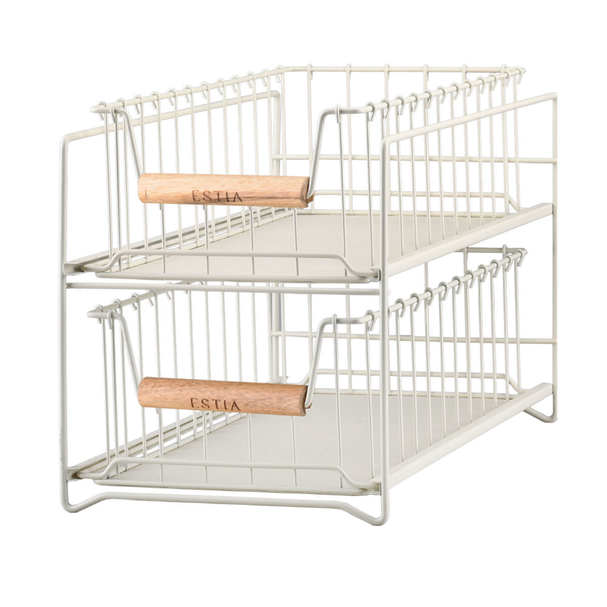Οργανώστε έξυπνα και κομψά την κουζίνα, το μπάνιο ή το γραφείο σας με το συρταρωτό καλάθι οργάνωσης δύο επιπέδων της συλλογής Allure από την Estia. Η μεταλλική του κατασκευή σε απαλή ivory απόχρωση προσφέρει ανθεκτικότητα και διαχρονικό στιλ, ενώ οι ξύλινες λαβές από ακακία προσφέρουν μία μοντέρνα εικόναη. Τα δύο συρταρωτά επίπεδα εξασφαλίζουν εύκολη πρόσβαση και ιδανική αξιοποίηση χώρου, κάνοντας το προϊόν ιδανικό για τρόφιμα, καλλυντικά, καθαριστικά ή μικροαντικείμενα. Μια πρακτική και κομψή λύση που συνδυάζει αισθητική και λειτουργικότητα, ιδανική για κάθε σπίτι.