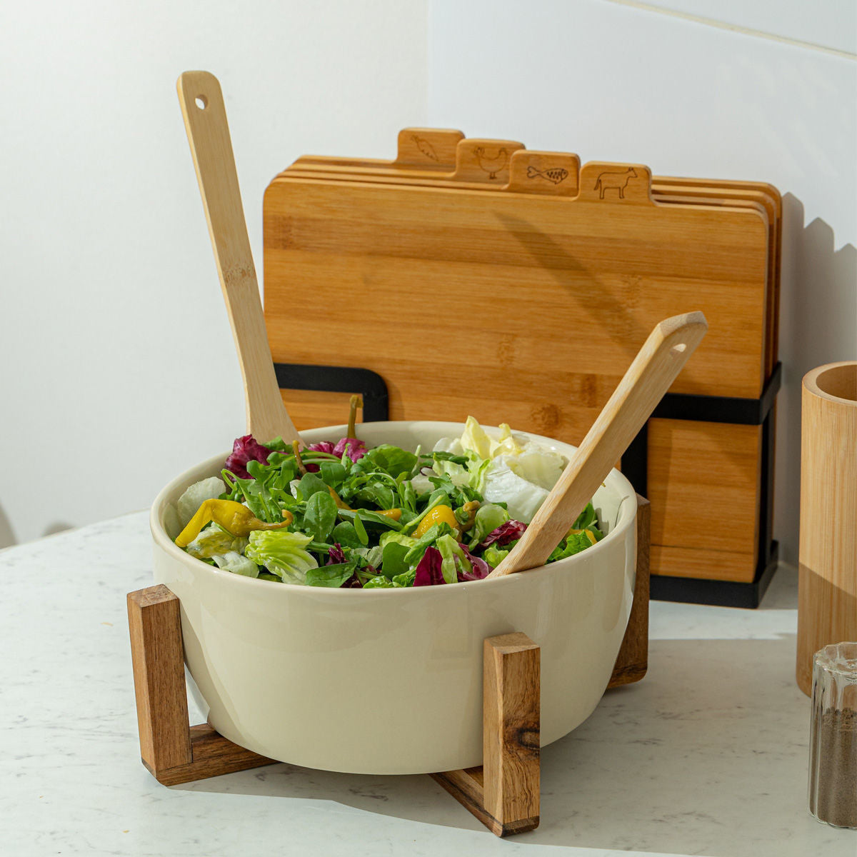 Σαλατιέρα Μπεζ Με Ξύλινη Βάση 28cm Allure Estia