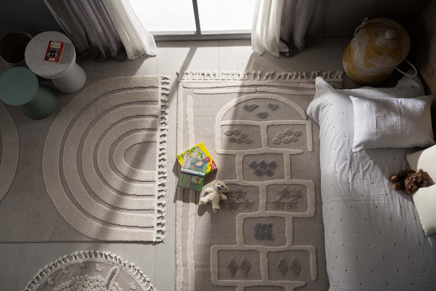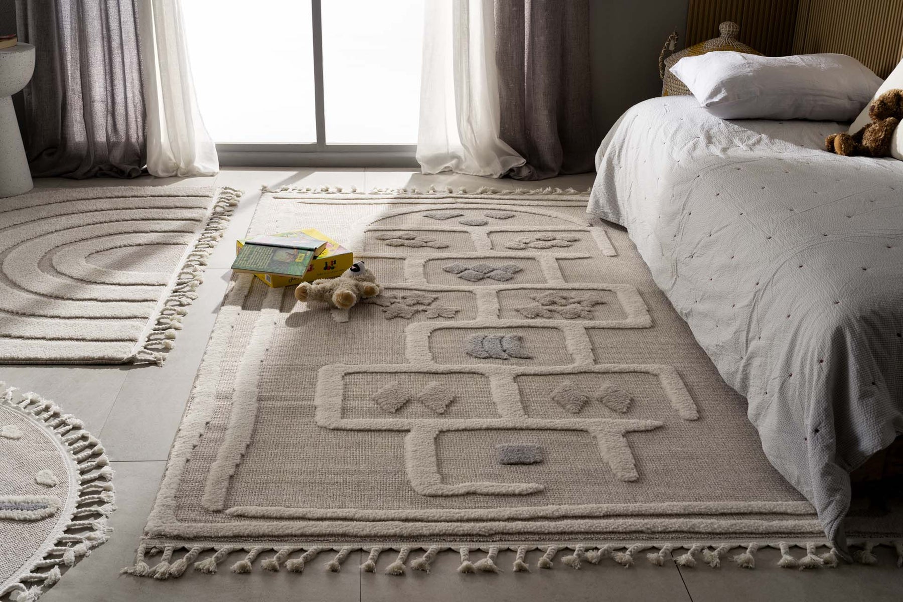 Δώστε ζωή στο παιδικό δωμάτιο με το χαλί "Lila Kids" Hopscotch της εταιρίας Royal Carpet σε διάσταση 80Χ150cm, το οποίο προσκαλεί τα παιδιά να παίξουν το κλασικό και αγαπημένο παιχνίδι, κουτσό. Είναι κατασκευασμένο από 100% soft πολυπροπυλένιο (pp). Αυτό το χαλί όχι μόνο διακοσμεί το δωμάτιο αλλά και υπόσχεται ατελείωτες ώρες διασκέδασης. Προσθέτει έναν αέρα παιχνιδιάρικης δημιουργικότητας και ξετρελαίνει τους μικρούς μας φίλους. Το υπόστρωμα του χαλιού, φτιαγμένο από μηχανοποίητη γιούτα, εξασφαλίζει σταθερότητα και αντοχή, ενώ η δίχρωμη μπούκλα διατηρεί τα χρώματα ζωντανά και το καθιστά εύκολο στο πλύσιμο και κατάλληλο για ενδοδαπέδια θέρμανση. Όλα τα χαλιά “Lila Kids” έχουν υποαλλεργική σύνθεση. Είναι η τέλεια επιλογή για να διακοσμήσετε και να ζεστάνετε το δωμάτιο του παιδιού σας.