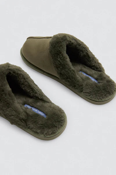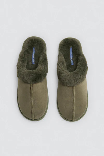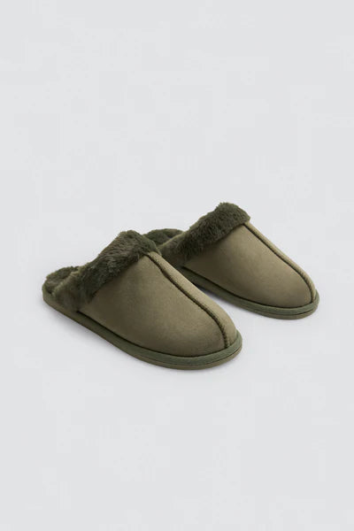 Ανδρικές παντόφλες της εταιρείας Ysabel Mora σε χακί χρώμα, με μαλακό εξωτερικό ύφασμα και πλούσια γούνινη επένδυση στο εσωτερικό για απόλυτη ζεστασιά. Ο συνδυασμός άνεσης και πρακτικότητας τις καθιστά ιδανικές για ξεκούραστες στιγμές στο σπίτι, ενώ η ανθεκτική σόλα προσφέρει σταθερό πάτημα και μεγάλη αντοχή στη χρήση. Ένα κομψό και ζεστό ζευγάρι που θα γίνει η αγαπημένη σας επιλογή για τον χειμώνα.