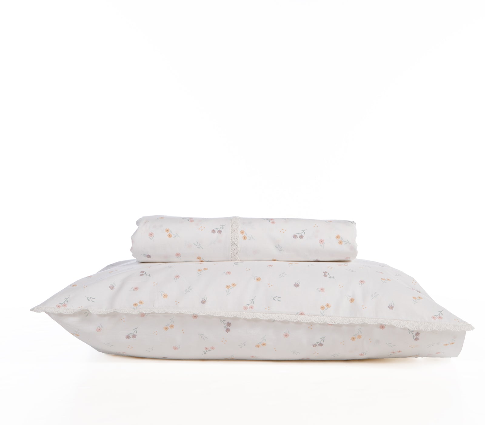 Σετ παπλωματοθήκη υπέρδιπλη λευκή με φλοράλ μοτίβο της εταιρείας Nef Nef Homeware, από βαμβακερό περκάλι. Το σετ περιλαμβάνει μία παπλωματοθήκη διάστασης 240x230 cm με φερμουάρ, σε λευκή βάση με μικρά λουλουδάκια σε απαλές ροζ και κίτρινες αποχρώσεις, καθώς και δύο μαξιλαροθήκες διάστασης 52x72 cm με το ίδιο φλοράλ σχέδιο. Μια κομψή πρόταση που θα γεμίσει το υπνοδωμάτιο με ρομαντισμό και φρεσκάδα.Ολοκληρώστε το αποτέλεσμα με σεντόνια και παπλώματα που ενσωματώνονται ιδανικά στην αισθητική του χώρου σας.