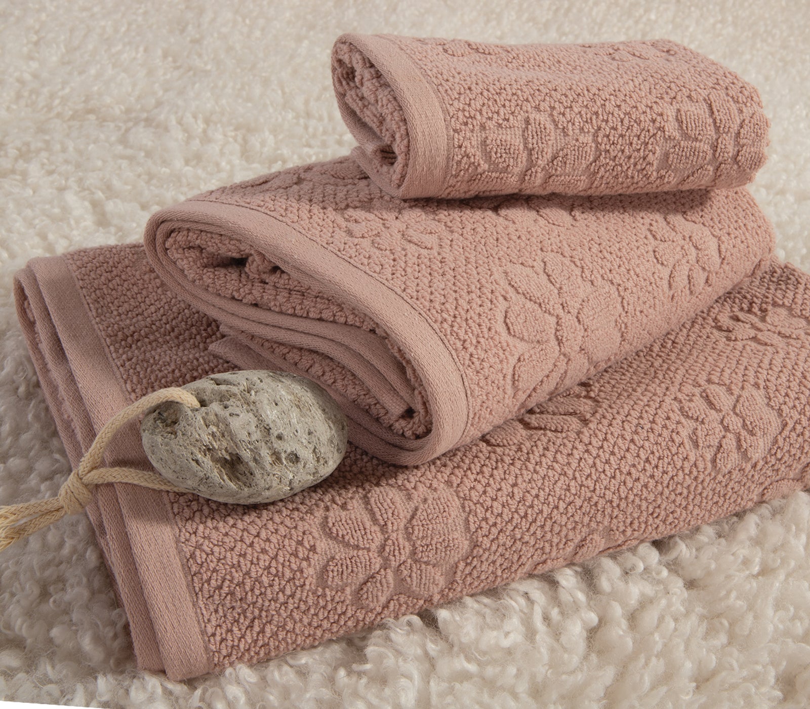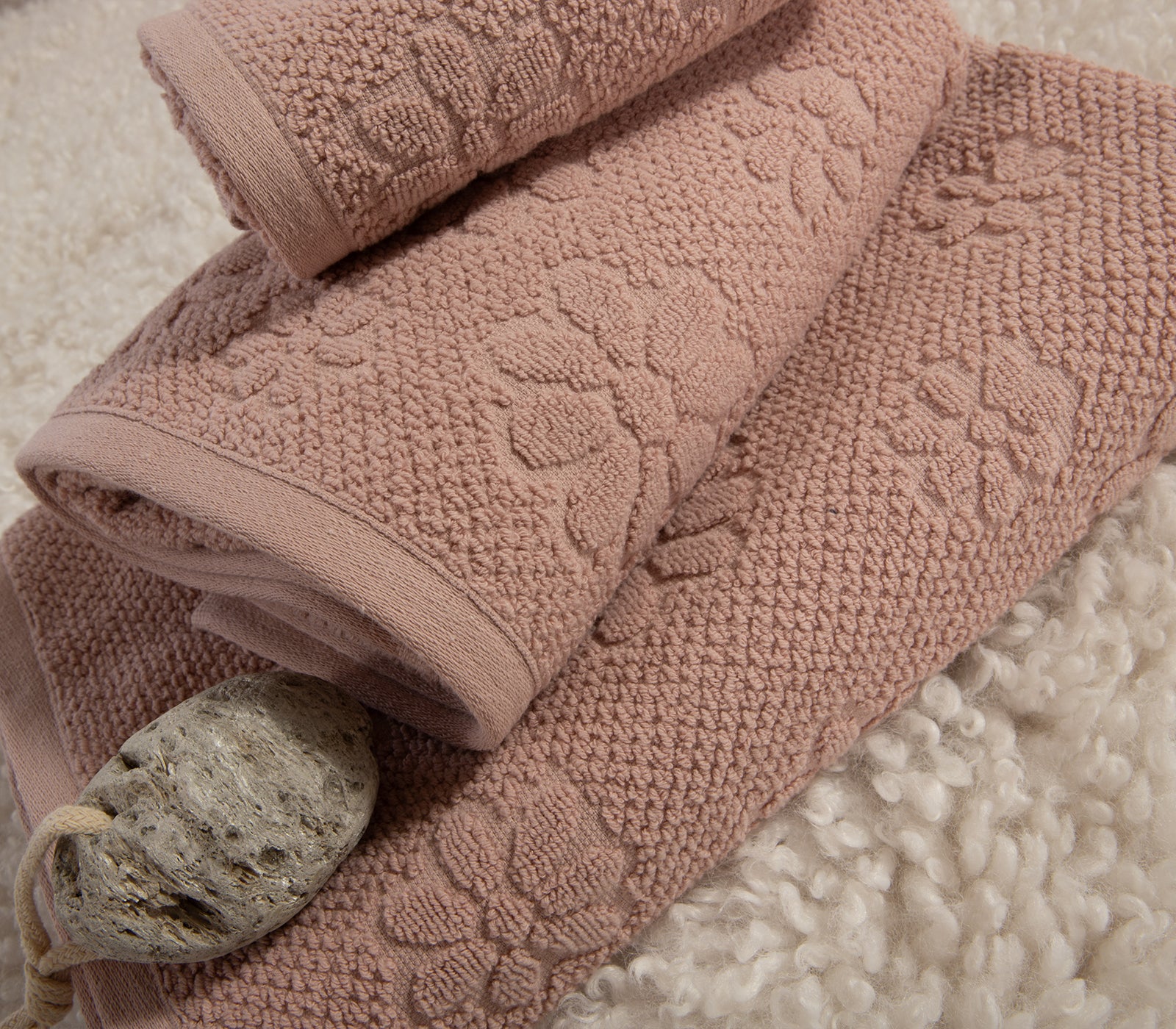 Ροζ πετσέτα μπάνιου Margot διάστασης 30X50cm της εταιρείας Nef-Nef Homeware. Κατασκευασμένη από 100% βαμβάκι ζακάρ με βάρος 550gr/m², συνδυάζει απαλή υφή με υψηλή απορροφητικότητα. Το διακριτικό σχέδιο με ανάγλυφα λουλούδια χαρίζει κομψότητα και μια αίσθηση φρεσκάδας στον χώρο του μπάνιου. Μια πετσέτα που συνδυάζει ποιότητα, άνεση και στιλ, ιδανική για να αναβαθμίσει την καθημερινή σας ρουτίνα. Συνδυάστε το και με τις υπόλοιπες διαστάσεις του ίδιου σχεδίου, καθώς και με τα χαλάκια μπάνιου μας για ένα ολοκληρωμένο αποτέλεσμα.