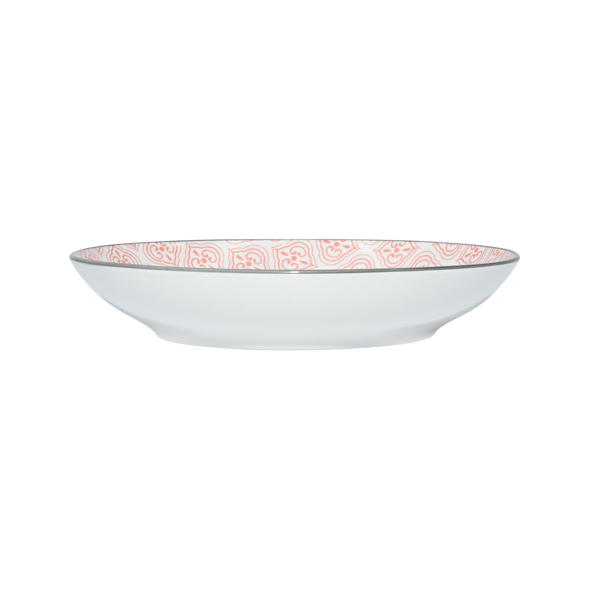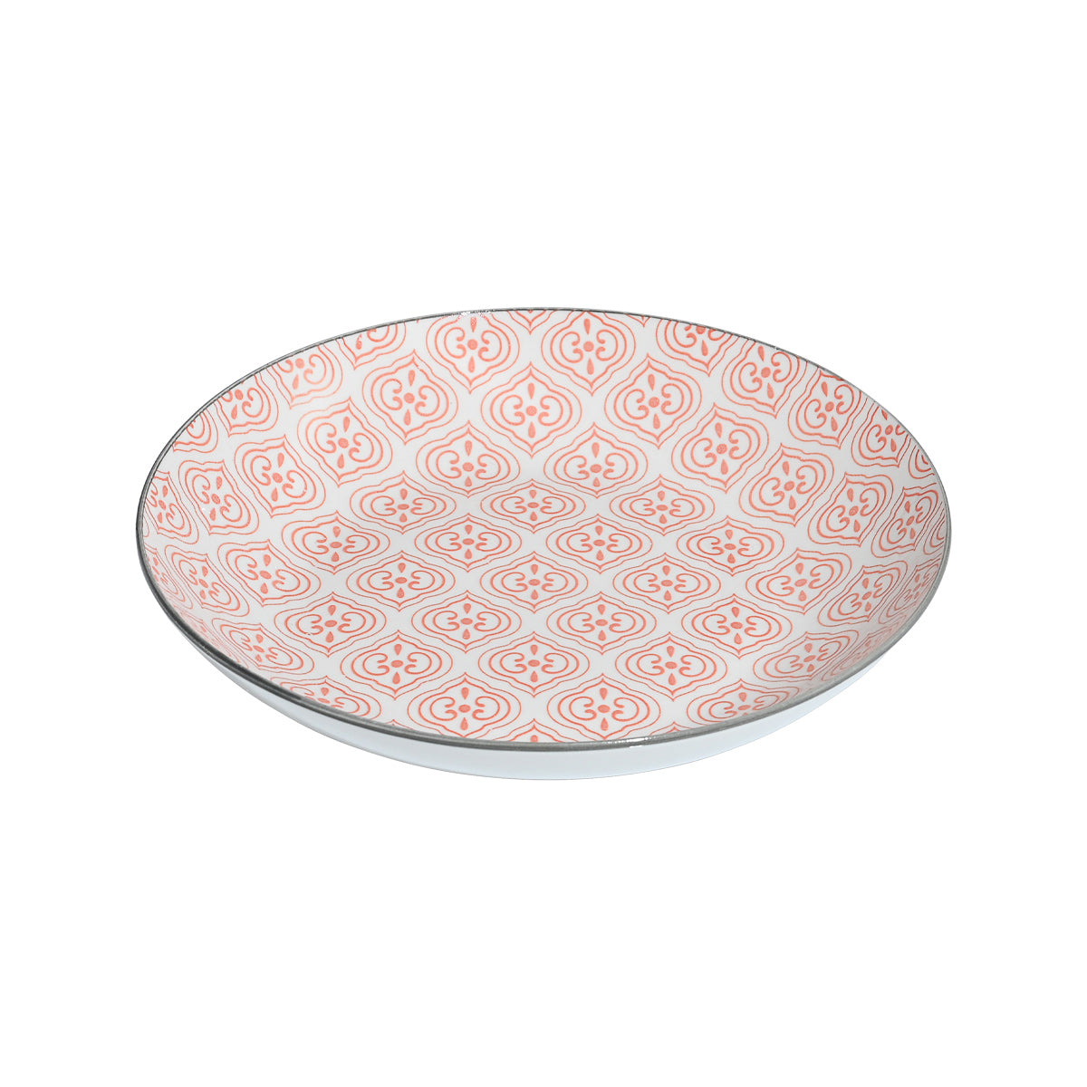 Πιάτο βαθύ Antique της εταιρείας Estia, κατασκευασμένο από πορσελάνη σε λευκή βάση με κοραλλί γεωμετρικό μοτίβο και γκρι περίγραμμα. Ιδανικό για να δώσει μια ανάλαφρη, ρετρό πινελιά στο καθημερινό τραπέζι. Το σχέδιο αποπνέει φρεσκάδα και χαρούμενη διάθεση. Μπορεί να συνδυαστεί εύκολα με μονόχρωμα ή μοτίβα του ίδιου στυλ για πιο δημιουργικό σερβίρισμα. Μία ιδανική επιλογή που συνδυάζει διαχρονικό σχέδιο και μοντέρνα αισθητική στο τραπέζι σας.