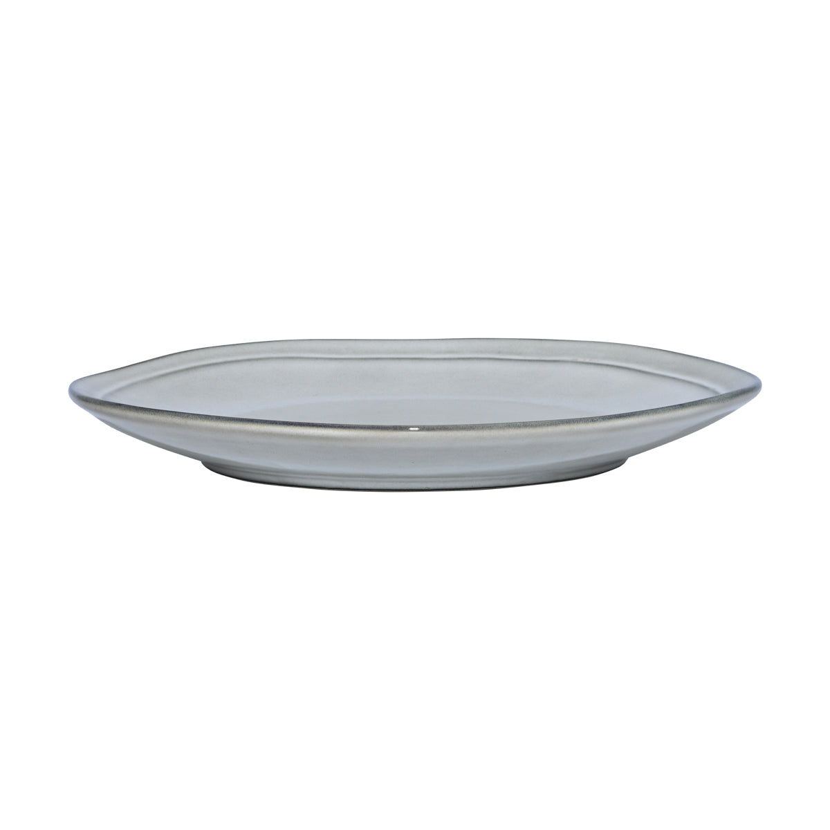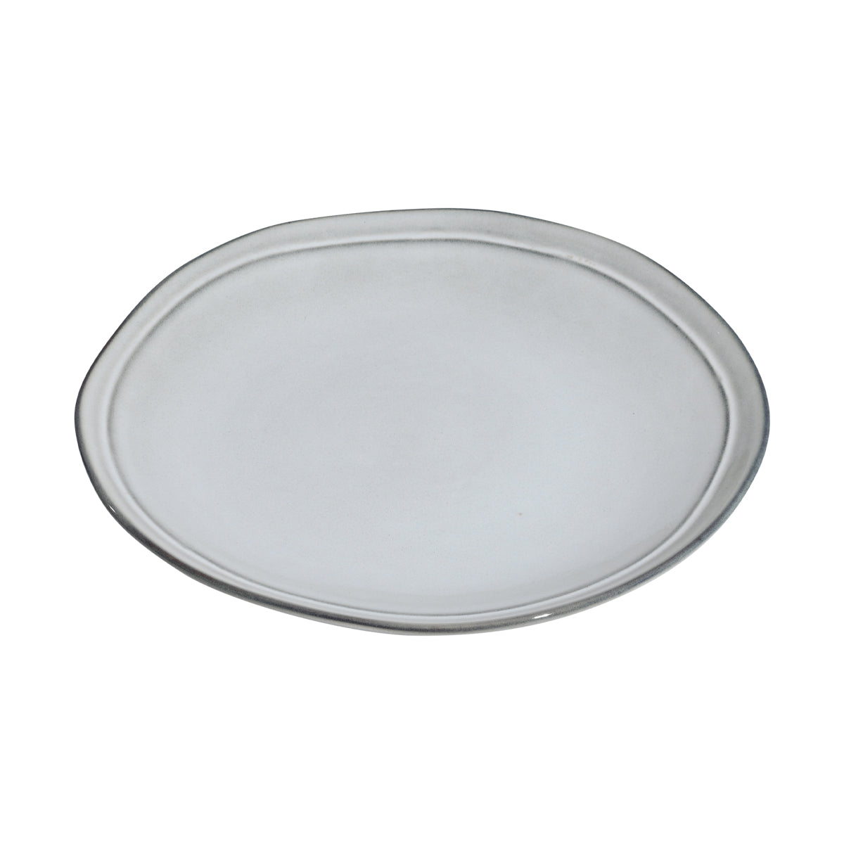Πιάτο ρηχό Deline σε γκρι απόχρωση από stoneware με ακανόνιστη περίμετρο σε λευκό φόντο.