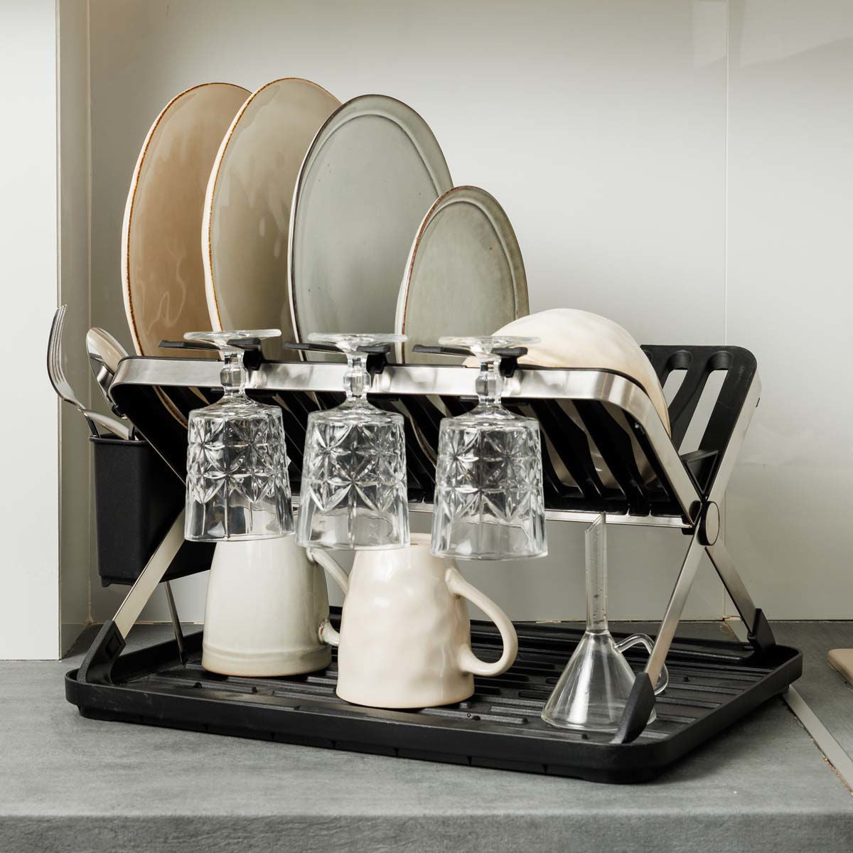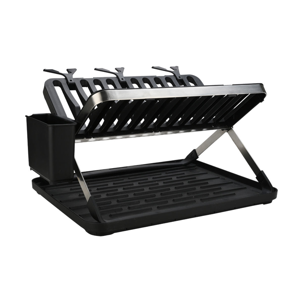 Πιατοθήκη Ανοξείδωτη Αναδιπλούμενη Μαύρη 2 Επιπέδων Με Θήκη Για Μαχαιροπίρουνα Estia 48X35.4X27.2cm