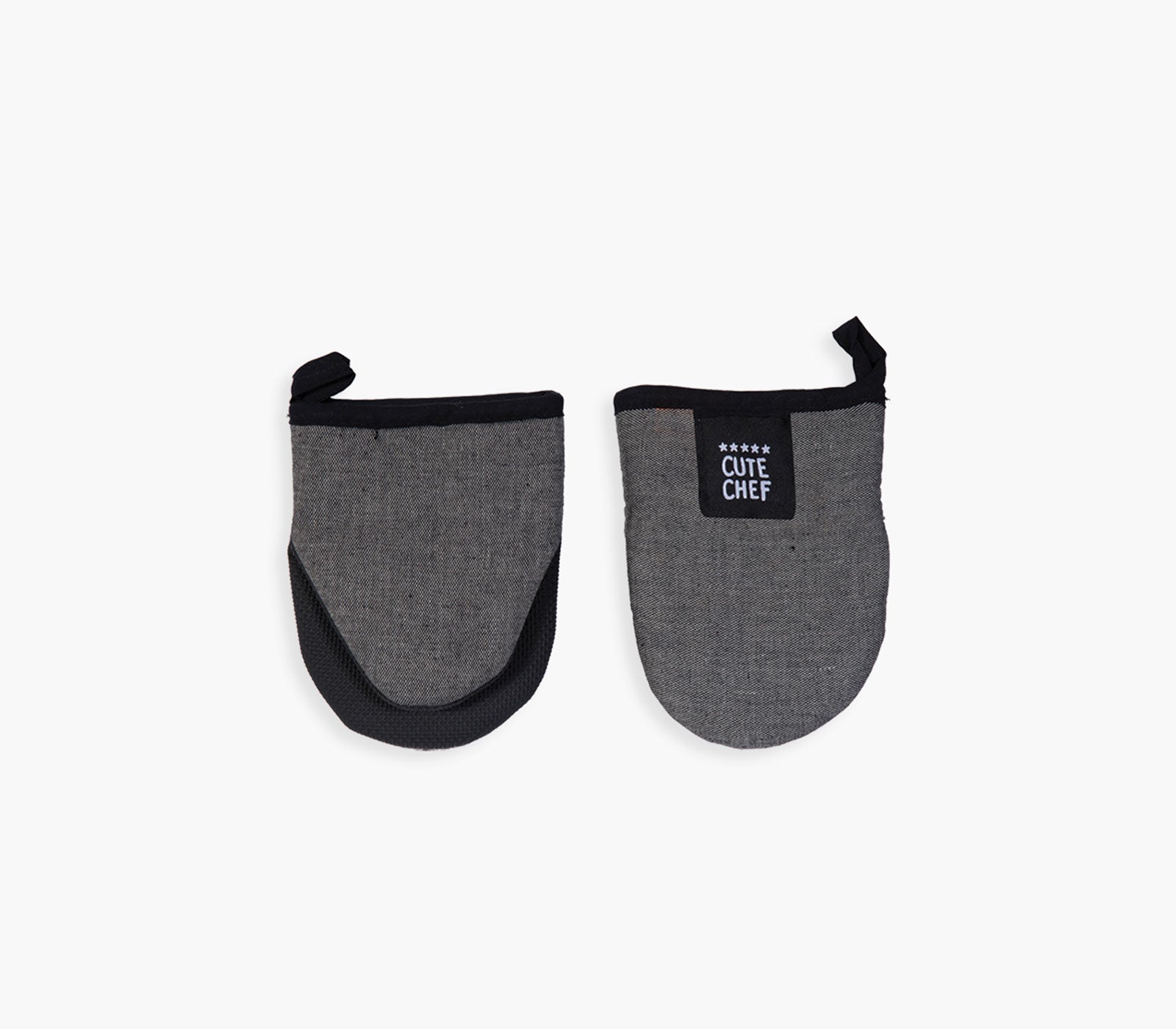 Γάντια κουζίνας Lorin σετ 2 τεμαχίων σε ανθρακί χρώμα της εταιρείας Nef-Nef Homeware κατασκευασμένα από 100% βαμβάκι. Έχουν μονόχρωμη ανθρακί βάση και ετικέτα, η οποία αναγράφει 'Cute Chef'. Η ποιοτική βαμβακερή κατασκευή τους συμβάλλει στην ανθεκτικότητα για καθημερινή χρήση. Προστατεύουν τα χέρια κατά το χειρισμό ζεστών σκευών και προσφέρουν σταθερό κράτημα. Διαθέσιμα σε 4 αποχρώσεις.