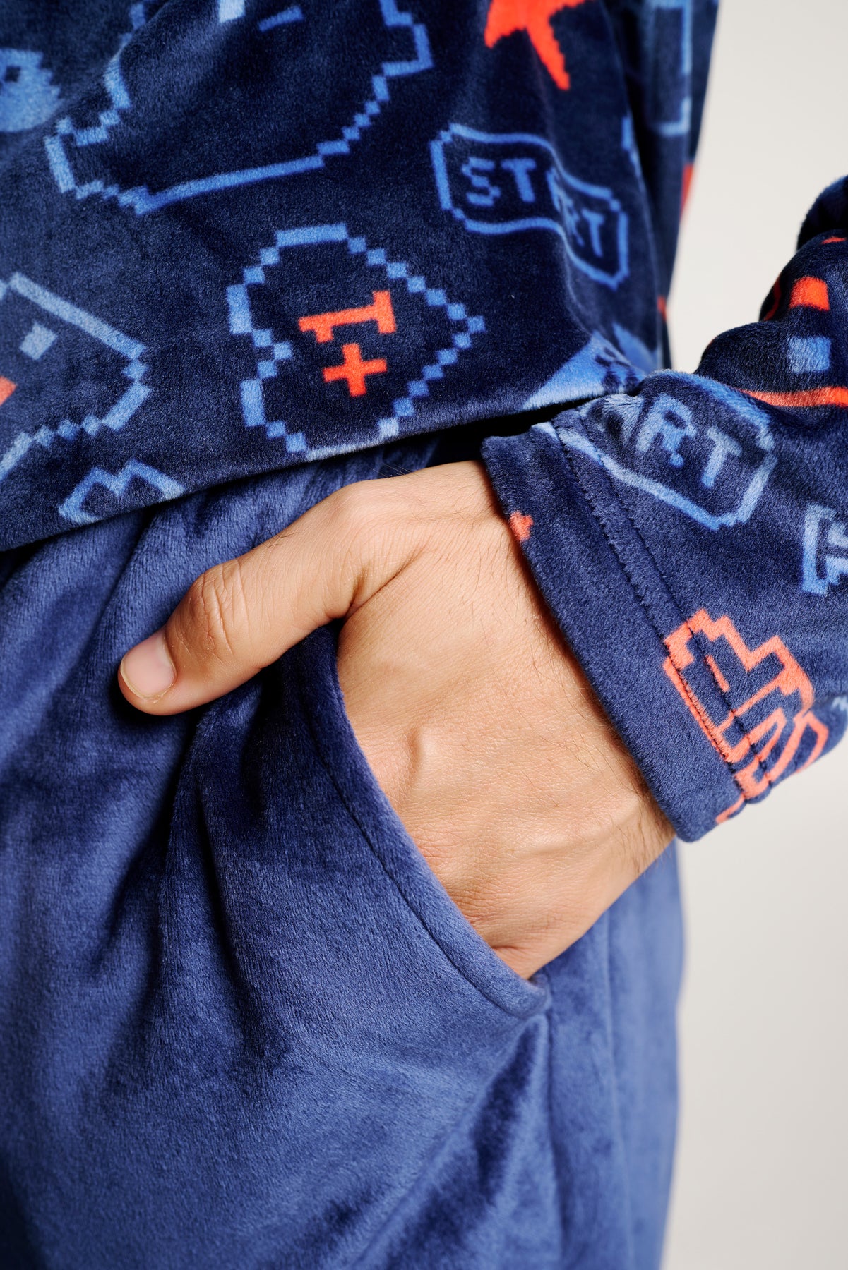Ανδρική Πιτζάμα Μπλε με Σχέδια Gamer Βελούδινη Muy Demi