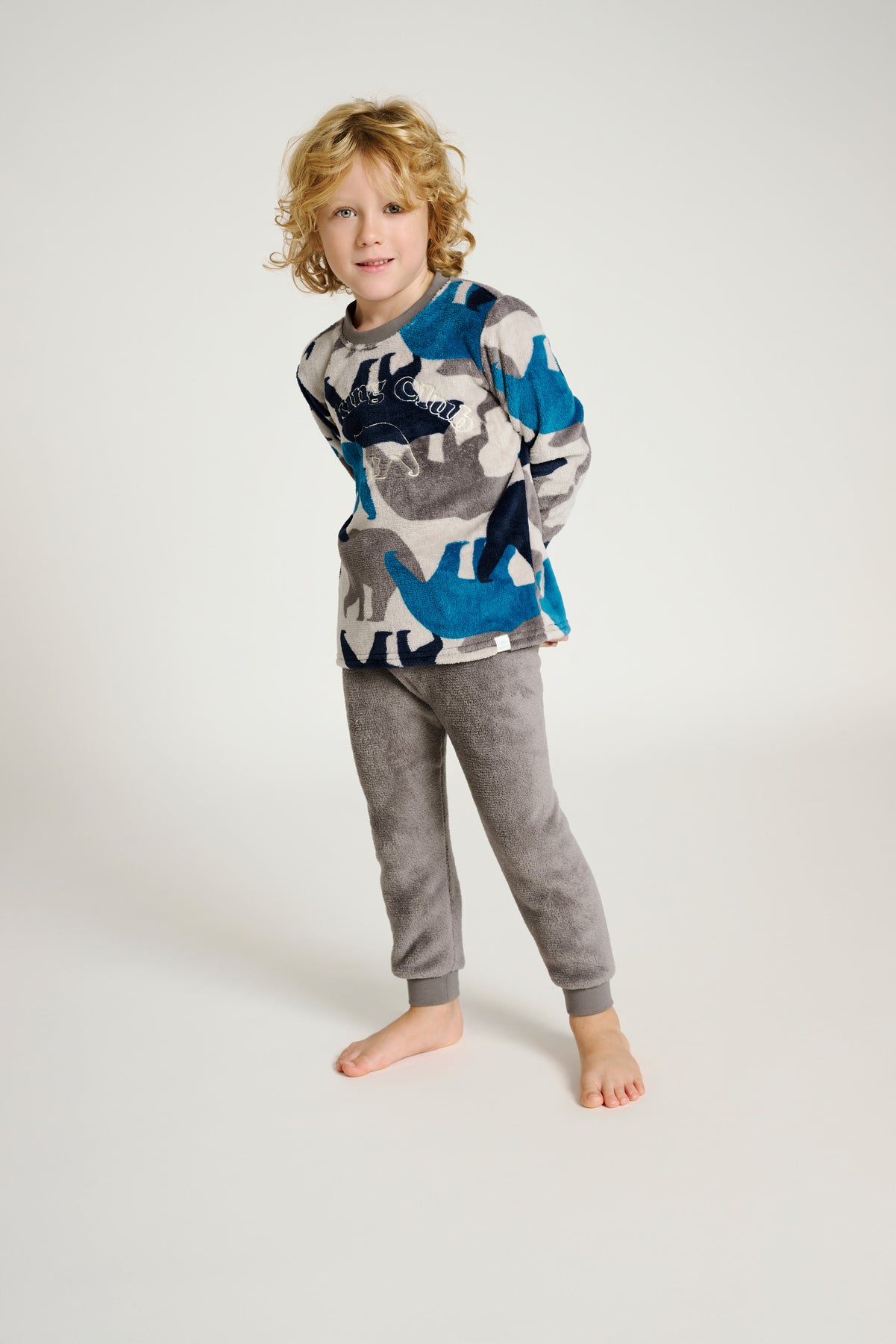 Παιδική χειμερινή πιτζάμα fleece της εταιρείας Muy Demi, σε γκρι απόχρωση με μπλούζα που ξεχωρίζει για το παιχνιδιάρικο σχέδιο με αρκούδες σε μπλε και γκρι τόνους. Το παντελόνι είναι μονόχρωμο γκρι με μπάσκες στο τελείωμα, προσφέροντας σταθερή και άνετη εφαρμογή. Η fleece υφή χαρίζει ζεστασιά και απαλότητα, αποτελώντας την ιδανική επιλογή για τις κρύες χειμερινές νύχτες.