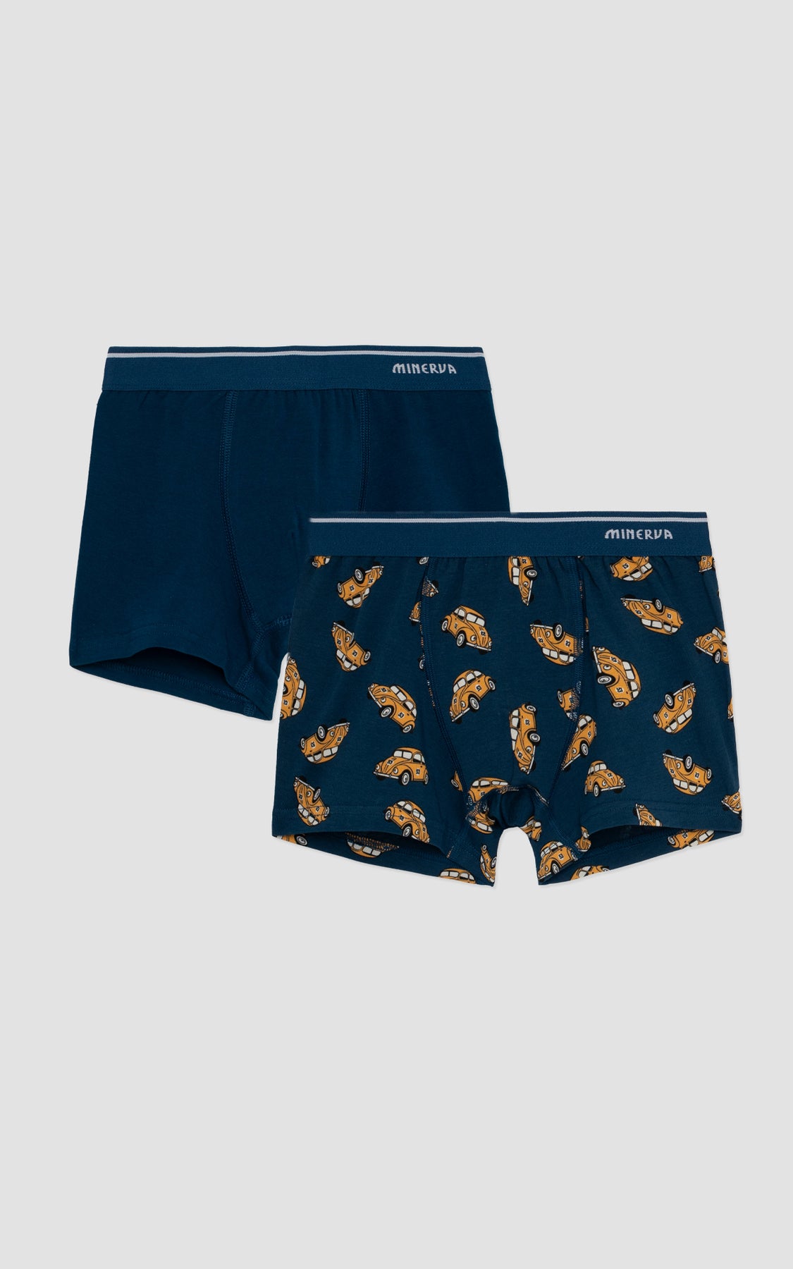 Παιδικό Boxer Σετ 2τμχ Μπλε Σκούρο Minerva Car Beetle