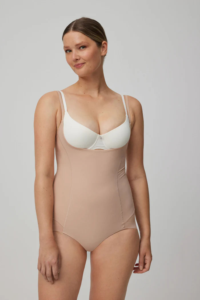 Γυναικείο κορμάκι Skin Shape σε μπεζ χρώμα της εταιρίας Ysabel Mora κατασκευασμένο από 73% πολυαμίδιο & 27% ελαστάνη. Το συγκεκριμένο εσώρουχο λειτουργεί ως κορσές και επιτυγχάνει να σμηλεύει το γυναικείο σώμα στην περιοχή της κοιλιάς (άνω, μέση & κάτω), της μέσης και της πλάτης. Μπορεί να φορεθεί και με σουτιέν. Το μαλακό ύφασμα και το λεπτό του σχήμα είναι πρακτικά ανεπαίσθητα κάτω από τα ρούχα, επιτρέποντάς σας να το φορέσετε με οποιοδήποτε σύνολο χωρίς να ανησυχείτε για εμφανή σημάδια ή γραμμές.