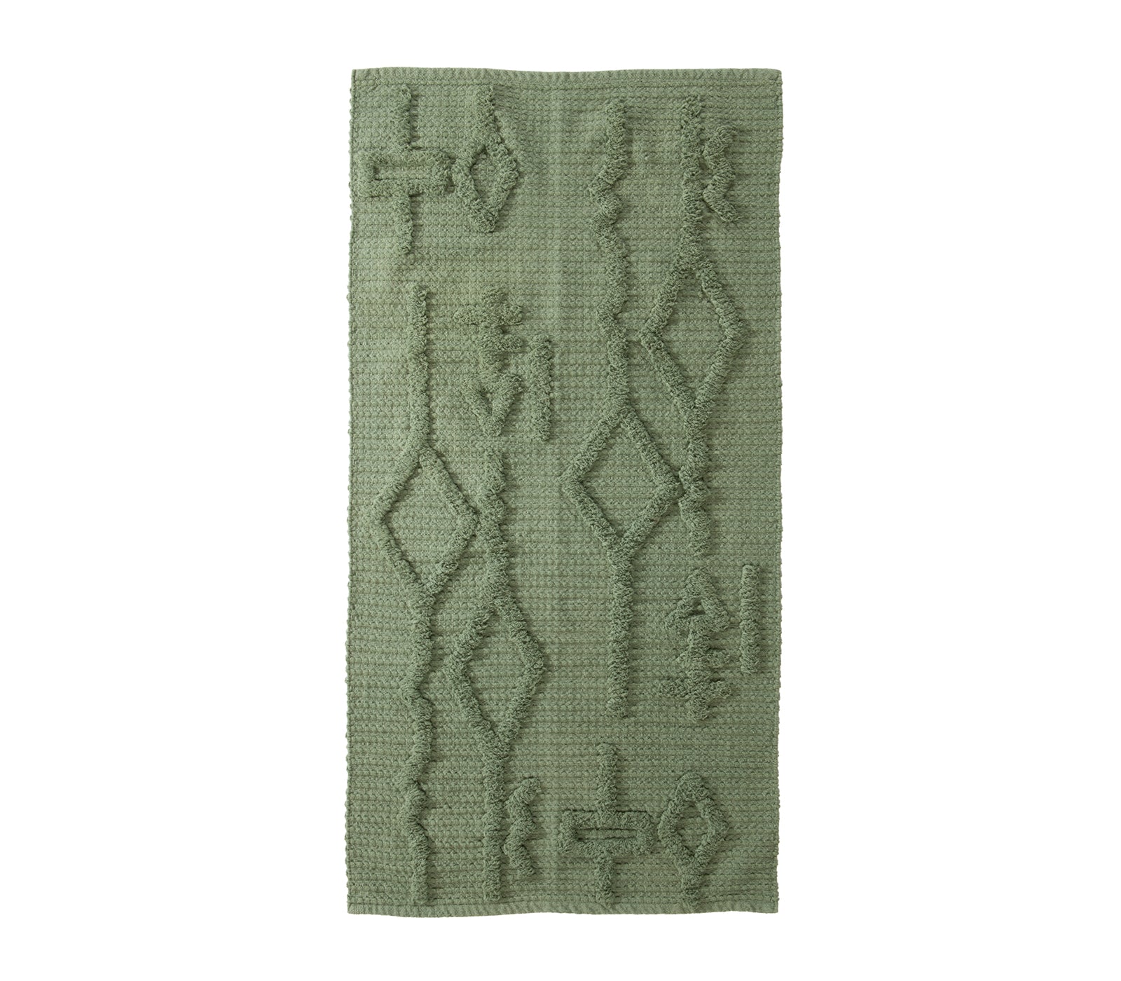Πράσινο χαλάκι με γεωμετρικά ανάγλυφα σχέδια σε λευκό φόντο.