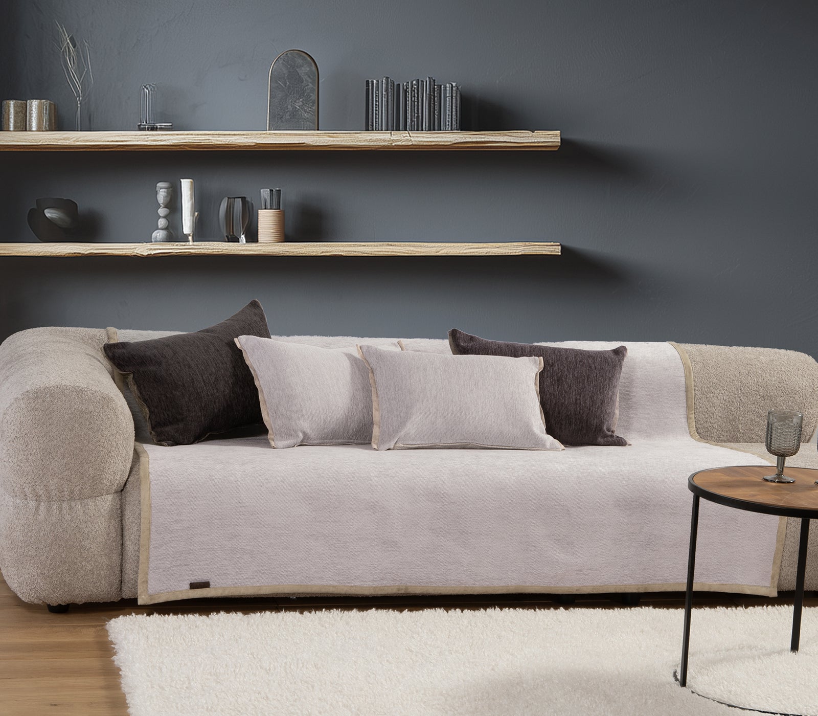 Ριχτάρι πολυθρόνας διπλής όψης New Tanger σε διάσταση 180Χ180cm της εταιρίας Nef-Nef Homeware σε γκρι/εκρού απόχρωση. Πρόκειται για σενίλ, μονόχρωμο ριχτάρι με δερματίνη στο τελείωμα, που χαρίζει κομψότητα και ιδιαίτερο χαρακτήρα στον χώρο. Το διακριτικό σχέδιο και η απαλή υφή του προσφέρουν άνεση και στυλ, ενώ η ανθεκτική σύνθεσή του από 100% πολυεστέρα το καθιστά ιδανικό για καθημερινή χρήση. Μεταμορφώστε το σαλόνι σας σε έναν χώρο γεμάτο άνεση και αισθητική. Συνδύαστε το με διακοσμητικά μαξιλάρια για ένα ολοκληρωμένο αποτέλεσμα.