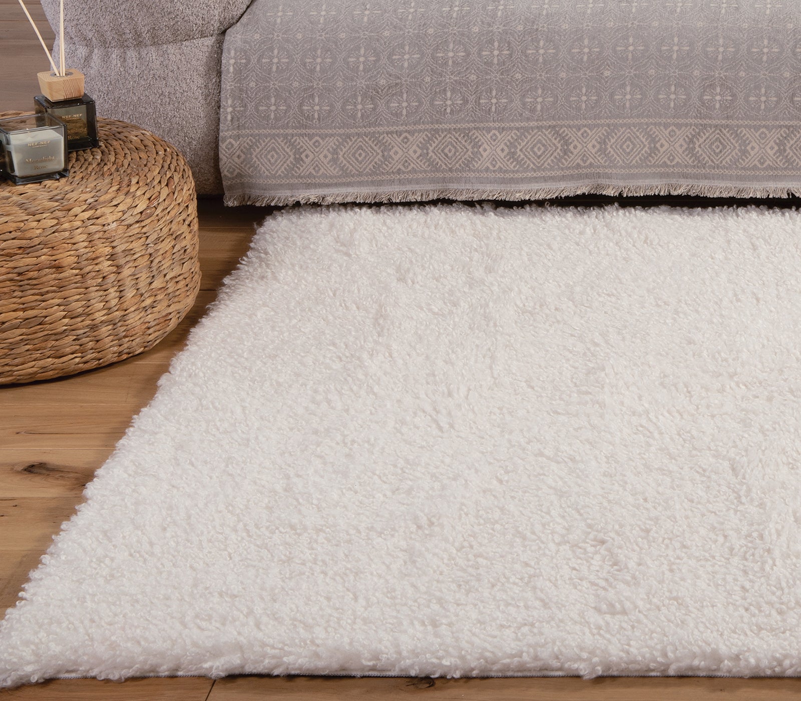 Ορθογώνιο λευκό χαλί σε minimal φόντο.