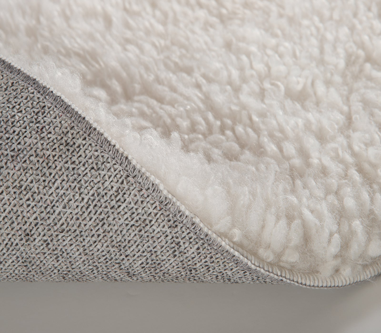 Κοντινή λεπτομέρεια λευκού χαλιού, με έμφαση στην υφή και την αντιολισθητική πίσω πλευρά.