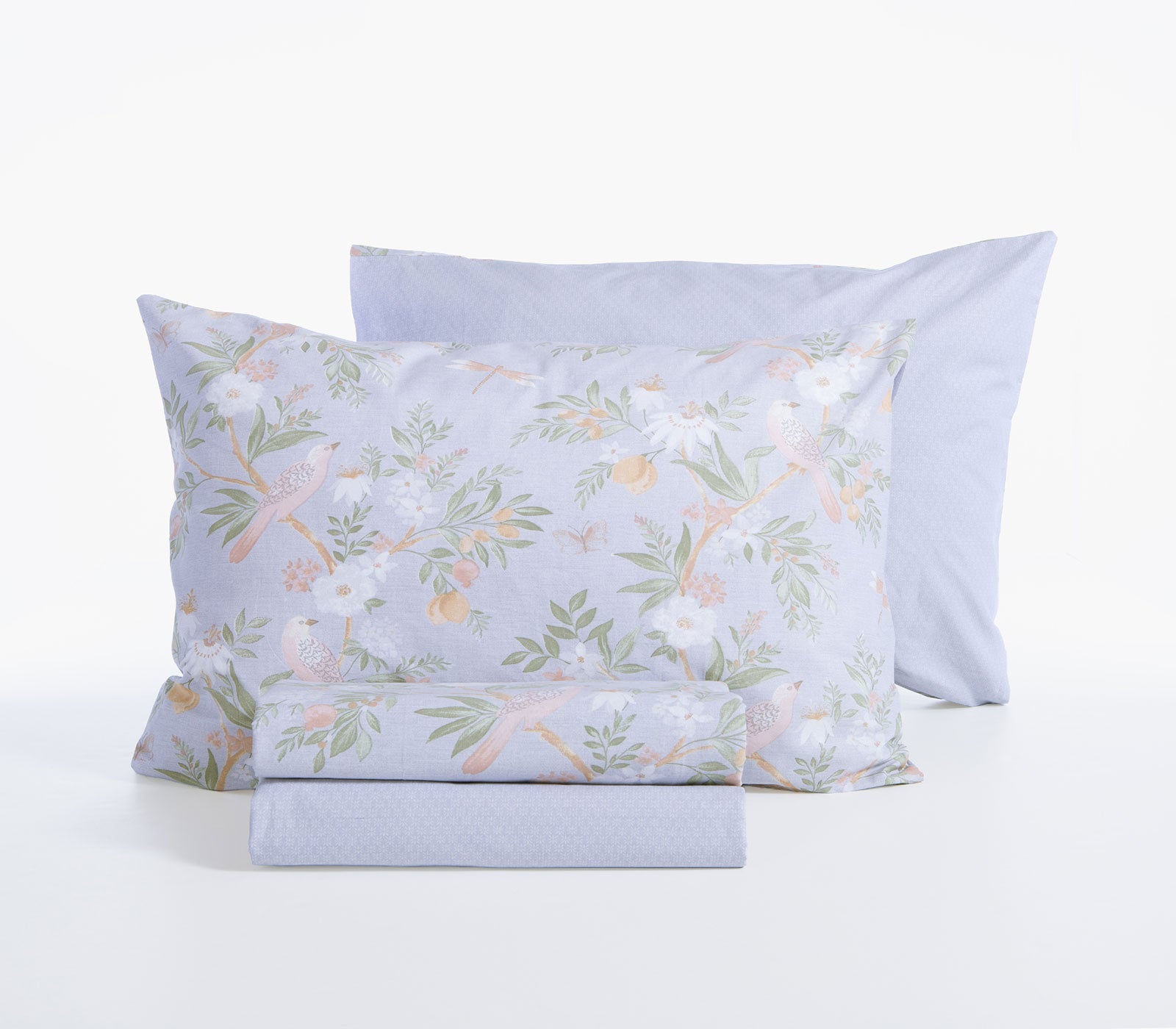 Σετ σεντόνια υπέρδιπλα Dreamel σε γαλάζιο χρώμα της εταιρείας Nef-Nef Homeware. Είναι κατασκευασμένο από 100% βαμβάκι υψηλής ποιότητας που προσφέρει απαλή, φυσική υφή και ευχάριστη αίσθηση στον ύπνο. Το πανωσέντονο σε διάσταση 240Χ270cm διαθέτει ρομαντικό floral μοτίβο με λουλούδια και φύλλα σε αποχρώσεις γαλάζιο, πράσινου και εκρού, ενώ το κατωσέντονο διάστασης 240Χ270cm είναι μονόχρωμο σε γαλάζιο απόχρωση. Το σετ ολοκληρώνεται με δύο μαξιλαροθήκες 52Χ72cm που ακολουθούν το ίδιο λουλουδάτο σχέδιο. Συνδυάστε το με διακοσμητικές μαξιλαροθήκες και κουβερλί της αρεσκείας σας για ένα ολοκληρωμένο αποτέλεσμα!