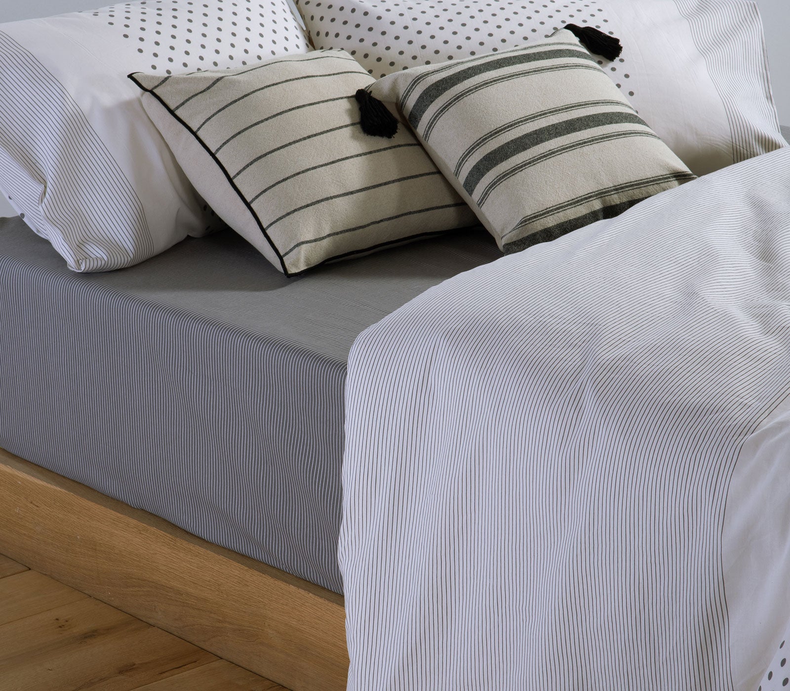 Σετ Σεντόνια Υπέρδιπλα Βαμβακερά Εκρού-Γκρι Με Λάστιχο Donter 160Χ200+35 Nef-Nef Homeware