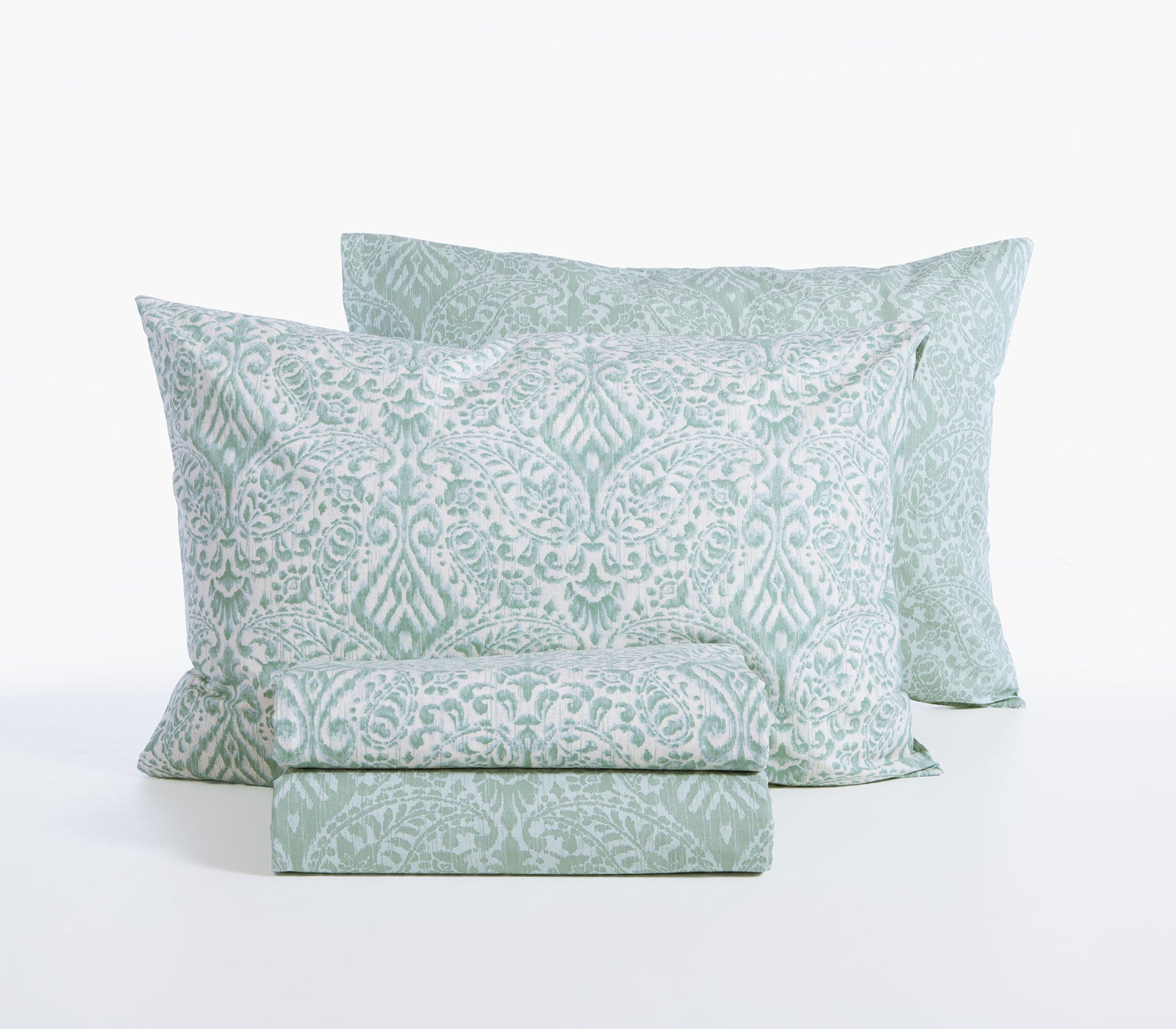 Σετ σεντόνια υπέρδιπλα με λάστιχο Jetrix σε μέντα απόχρωση της εταιρείας Nef-Nef Homeware. Είναι κατασκευασμένο από 100% βαμβάκι υψηλής ποιότητας που προσφέρει απαλή, φυσική υφή και ευχάριστη αίσθηση στον ύπνο. Το πανωσέντονο σε διάσταση 240Χ270cm διαθέτει κομψό διακοσμητικό μοτίβο σε λευκούς τόνους πάνω σε πράσινο φόντο, δημιουργώντας μια ρομαντική και φωτεινή αισθητική στο υπνοδωμάτιο, ενώ το κατωσέντονο με λάστιχο διάστασης 160Χ200+35cm είναι μονόχρωμο σε μέντα απόχρωση και εφαρμόζεται σταθερά στο στρώμα. Το σετ ολοκληρώνεται με δύο μαξιλαροθήκες 52Χ72cm που ακολουθούν το ίδιο διακριτικό σχέδιο. Συνδυάστε το με διακοσμητικές μαξιλαροθήκες και κουβερλί της ίδιας συλλογής για ένα ολοκληρωμένο αποτέλεσμα!